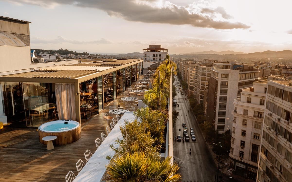 Στην εμβληματική πλατεία Ομονοίας, το Brown Acropol αναδεικνύει τη ρετρό αισθητική της δεκαετίας του '70, συνδυάζοντας μοναδικά το mid-century modern design με σύγχρονες, ζωντανές πινελιές. Εμπνευσμένοι από τη δεκαετία του 1960, οι εσωτερικοί χώροι κοσμούνται από ρετρό λεπτομέρειες, όπως τρόλεϊ-μπαρ και πικάπ, σε ζεστές αποχρώσεις πορτοκαλί και μουσταρδί. Το ξενοδοχείο προσφέρει άμεση πρόσβαση σε πολιτιστικά αξιοθέατα της Αθήνας, εντυπωσιακή θέα από το rooftop και μια ζωντανή ατμόσφαιρα που αποτυπώνει την ψυχή της πόλης. Εκεί, μπορείτε να απολαύσετε την πανοραμική θέα της Αθήνας και της Ακρόπολης από το rooftop του ξενοδοχείου, εξοπλισμένο με τέσσερα υπαίθρια jacuzzi, αιώρες και ξαπλώστρες, δημιουργώντας ένα μοναδικό σκηνικό χαλάρωσης. Το spa διαθέτει ιδιωτικές αίθουσες θεραπειών, σάουνα και χαμάμ, ενώ οι λάτρεις της άσκησης μπορούν να επωφεληθούν από το πλήρως εξοπλισμένο γυμναστήριο που βρίσκεται επίσης στο rooftop. Στο lobby, το ρετρό εμπνευσμένο cocktail bar και η βιβλιοθήκη προσφέρουν έναν φιλόξενο χώρο για κοινωνική αλληλεπίδραση.