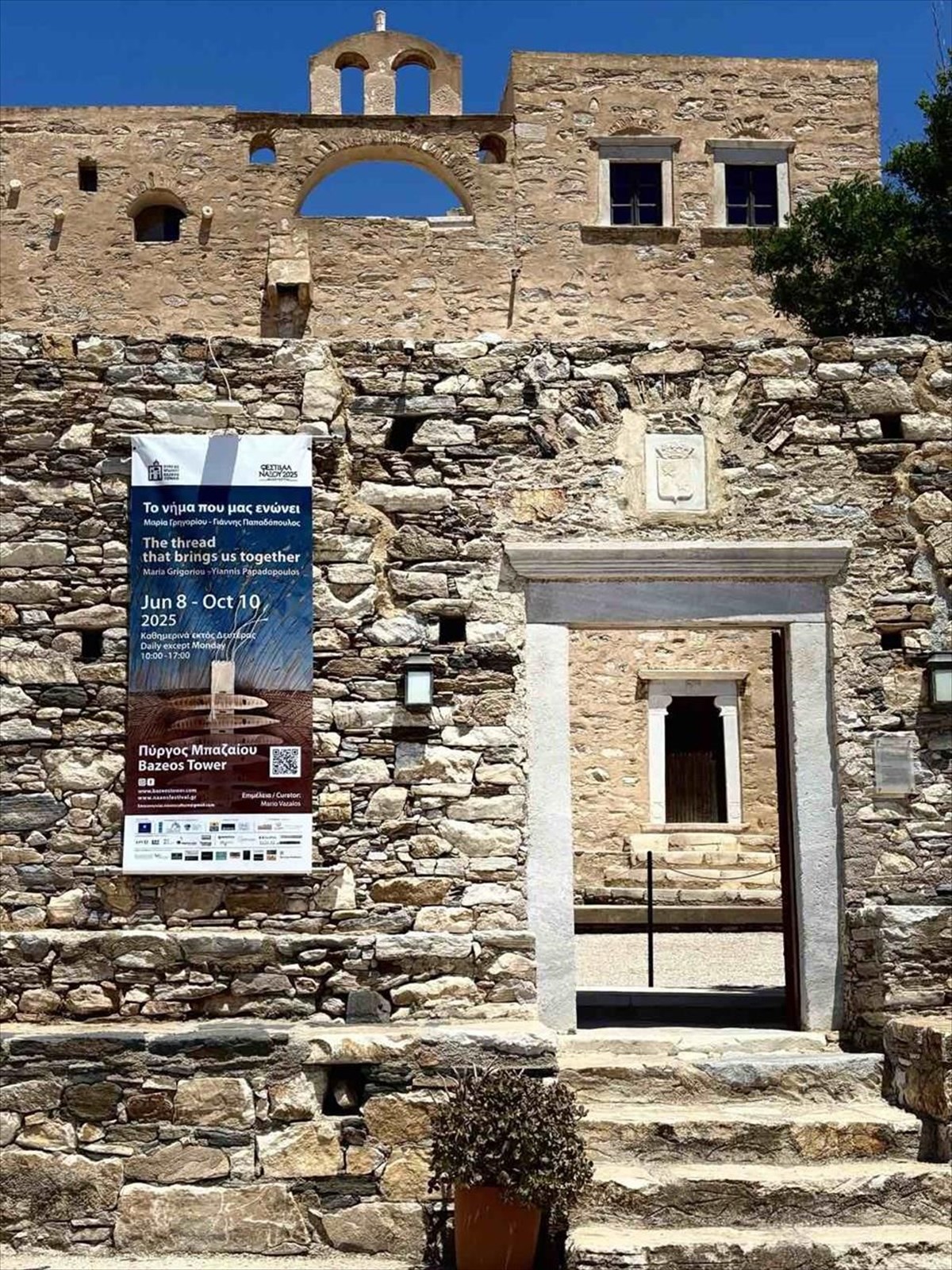 Για την εφετινή πρωτότυπη εικαστική παραγωγή του Φεστιβάλ, προσκαλούνται δυο διακεκριμένοι εικαστικοί δημιουργοί, η Μαρία Γρηγορίου και ο Γιάννης Παπαδόπουλος. Με μακρόχρονες παράλληλες διαδρομές αλλά και καλλιτεχνική αυτονομία, εμβαθύνουν με σπουδή και γνώση στην υφαντική και χειρωνακτική τέχνη. Οι δύο καλλιτέχνες χρησιμοποιούν διαφορετικά πρωτογενή υλικά όπως λινό, βαμβάκι και μετάξι και αξιοποιούν παραδοσιακές τεχνικές, όπως η ύφανση με φυτικές βαφές και η παραγωγή χειροποίητου χαρτιού, δημιουργώντας παράλληλα γλυπτικά τοπία. Αναπτύσσοντας τα έργα τους, παλιά αλλά και νέες κατασκευές in situ, μέσα στους χώρους του ιστορικού μνημείου, αναδεικνύουν τη διαχρονία της υφαντικής παράδοσης, τη μετεξέλιξη της σε σύγχρονη εικαστική τέχνη και έκφραση. Επιμέλεια: Μάριος Βαζαίος – Διοργάνωση: Φεστιβάλ Νάξου