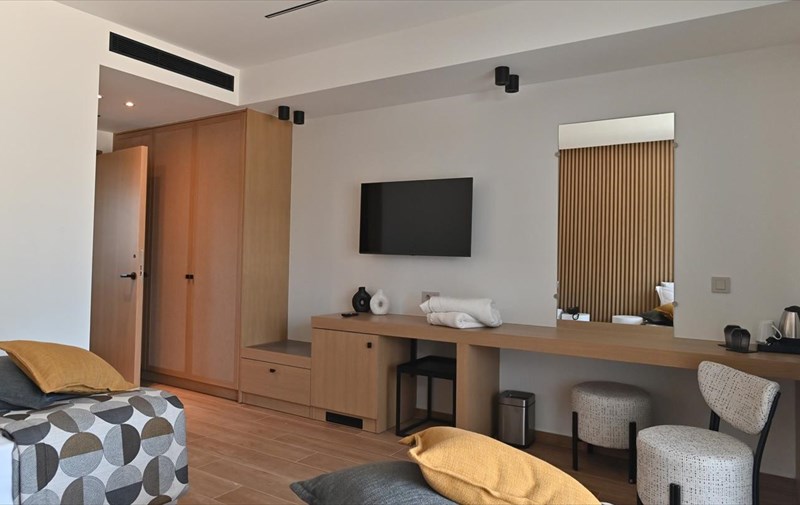 Οι σουίτες και τα δωμάτια (Deluxe, Executive και προσαρμοσμένα για ΑμεΑ) είναι κομψά και άνετα, με μπαλκόνια που βλέπουν απευθείας στους αμπελώνες, minibar, δωρεάν WiFi και όλες τις σύγχρονες ανέσεις. Οι επισκέπτες το αποθεώνουν ως «πραγματικό θησαυρό»: «Ολοκαίνουργιο ξενοδοχείο με εξαιρετικές εγκαταστάσεις, προσεγμένο design και απίστευτη εξυπηρέτηση», γράφει ένας πρόσφατος ταξιδιώτης, ενώ άλλος τονίζει το «ζεστό καλωσόρισμα και το υπέροχο πρωινό με τοπικά προϊόντα».