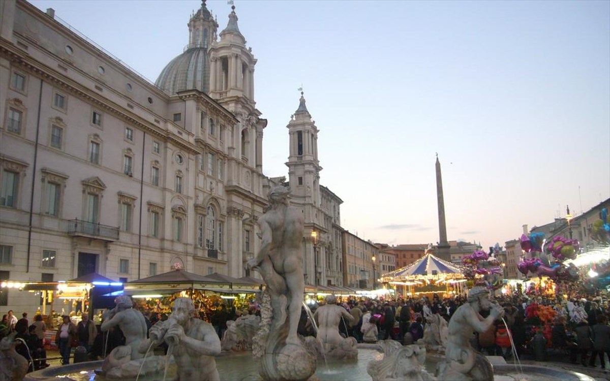 Η Αιώνια Πόλη, αν και περισσότερο καλοκαιρινός προορισμός, έχει να προσφέρει σε ντόπιους και επισκέπτες μια από τις πιο όμορφες πλατείες της, την Piazza Navona, στολισμένη και γιορτινή, με παζάρια, στα οποία θα βρούν κάθε λογής στολίδια και λιχουδιές. Αυτή η αγορά όμως, δεν κλείνει όπως οι περισσότερες την παραμονή της Πρωτοχρονιάς, αλλά διαρκεί μέχρι και των Φώτων, καθώς προκειται ουσιαστικά για το επίσημο κλείσιμο της εορταστική περιόδου.