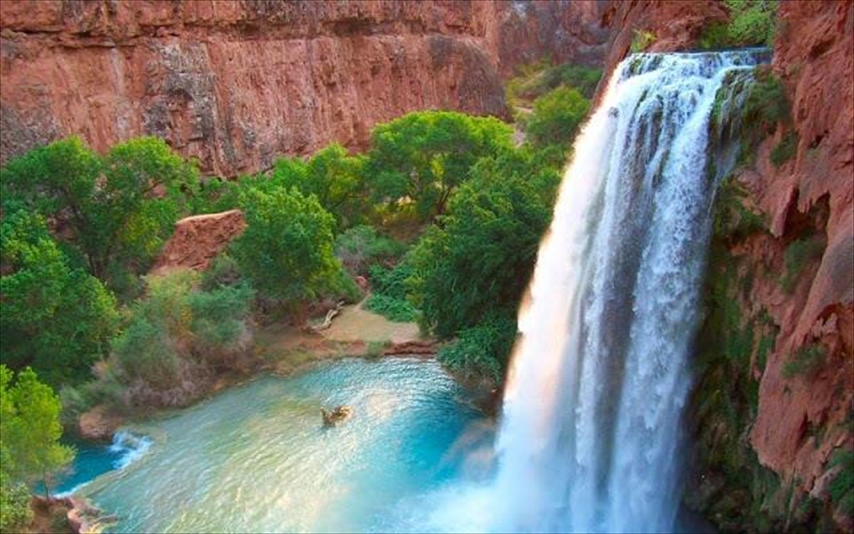 Eίναι μια από τις πιο μαγικές εικόνες, που μπορείτε να δείτε από κοντά: ένας καταρράκτης στο Grand Canyon πέφτει από ύψος 27 μέτρων μέσα σε μια μεγάλη πισίνα.