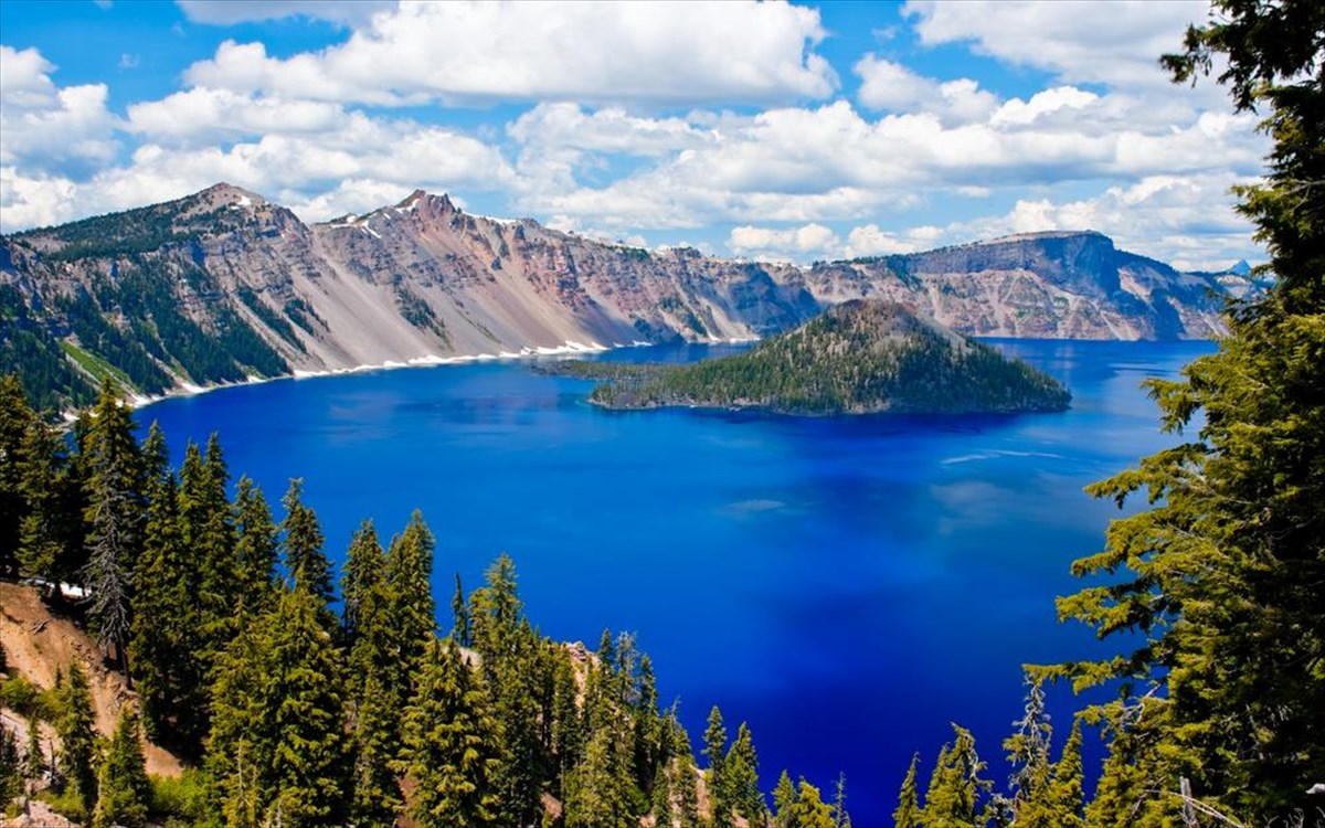 Πρόκειται για μία λίμνη-καλντέρα στη νοτιοκεντρική περιοχή του Όρεγκον, ιδιαίτερης ομορφιάς. Δημιουργήθηκε με την κατάρρευση του ηφαιστείου Mazama χιλιάδες χρόνια πριν και είναι η πιο βαθιά λίμνη των Ηνωμένων Πολιτειών.
