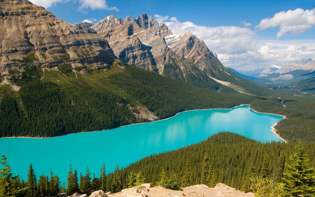 Αν και οι θερμοκρασίες εδώ ξεφεύγουν, οι λίμνες του Καναδά μπαίνουν σίγουρα στη λίστα με τις πιο όμορφες λίμνες του πλανήτη. Τη λίμνη Πέιτο στο Εθνικό Πάρκο Banff στα Rocky Mountains είναι καλύτερο να την επισκεφτείτε τους ζεστούς μήνες του καλοκαιριού όπου παίρνει ένα πανέμορφο τιρκουάζ χρώμα, με τις φωτογραφίες της να δημοσιεύονται παντού, χωρίς photoshop, και να προκαλούν θαυμασμό.