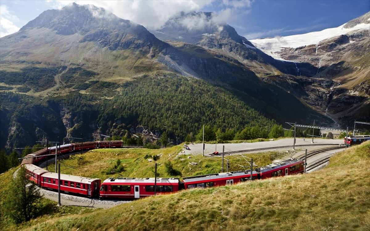 Το κόκκινο αυτό τρένο περνάει από τις ελβετικές Άλπεις και την κοιλάδα Engadin σε σιδηρόδρομο που ενώνει την Ελβετία με την Ιταλία και, όπως καταλαβαίνετε, το τετράωρο ταξίδι που πραγματοποιεί γεμίζει με εκατοντάδες μοναδικές εικόνες τους ταξιδιώτες. Στο παράθυρο του τρένου «ξεδιπλώνονται» οι Άλπεις, παγωμένες λίμνες, τούνελ, γέφυρες και όλα μοιάζουν με πίνακα ζωγραφικής. Το ταξίδι αυτό προσφέρει σύνδεση με λεωφορείο, το Post Bus, για το αντίστροφο ταξίδι από τη λίμνη Como της Ιταλίας, στο Lugano της Ελβετίας. Κόστος: 28 ευρώ