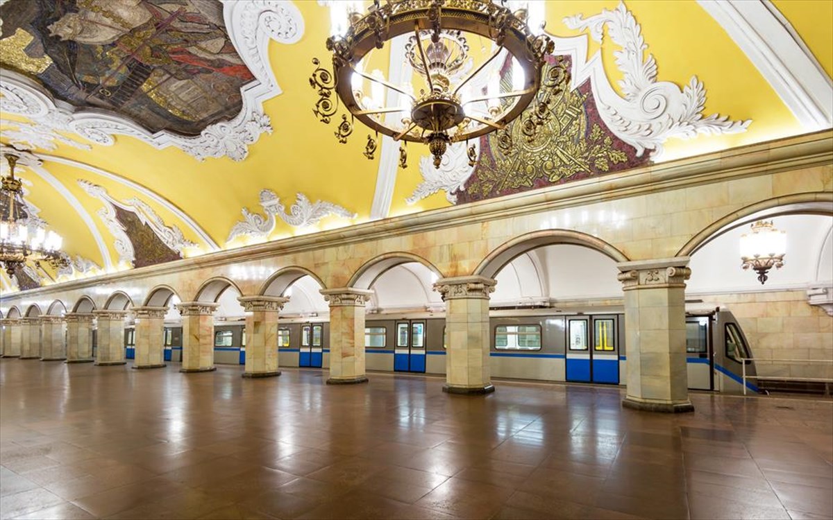 Ένα από τα πιο πλούσια και πολυτελή μετρό, το μετρό της Μόσχας δεν έχει απλά παγκάκια και πίνακες ανακοινώσεων. Είναι γεμάτο μωσαϊκά, αγάλματα, επιχρυσωμένες λεπτομέρειες και πολυελαίους. Άνοιξε το 1935 και σήμερα περισσότεροι από 8 εκατομμύρια επιβάτες το χρησιμοποιούν καθημερινά.
