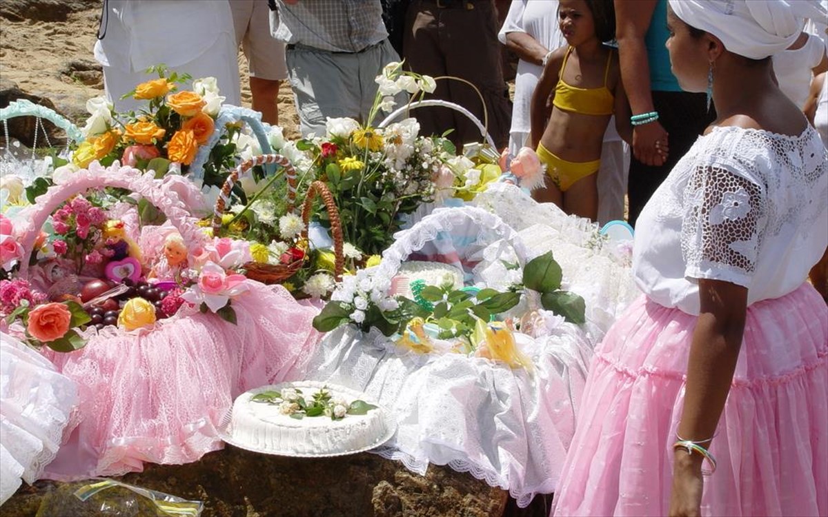 Εδώ δεν χτυπούν κατσαρόλες, αλλά συνηθίζουν να φορούν άσπρα όταν μπαίνει ο χρόνος, προκειμένου να διώξουν το "κακό". Ακόμη, η παράδοση λέει ότι πρέπει να πηδήξουν 7 κύματα -ένα για κάθε ημέρα της εβδομάδας- για καλή τύχη. Τέλος, οι Βραζιλιάνοι έχουν μια δημοφιλή θεά στους μύθους τους, την Iemanja, η οποία ελέγχει τη θάλασσα και της αρέσουν τα δώρα. Γι’ αυτό και την Πρωτοχρονιά ή την παραμονή της πετούν λουλούδια στη θάλασσα, ελπίζοντας να μην τα στείλει πίσω.
