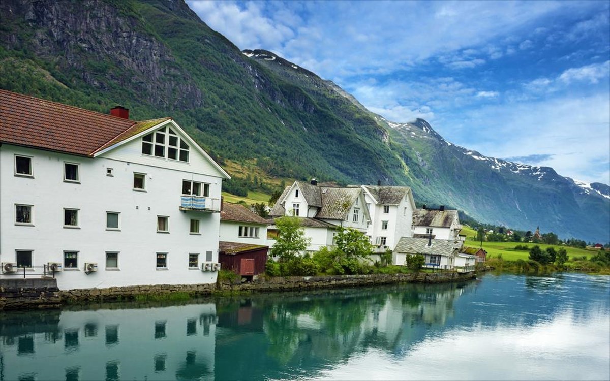 Πηγαίνοντας πιο βόρεια, προς τη Νορβηγία, το Olden είναι ένα γραφικό χωρίο με περίπου 500 κατοίκους, σε ένα από τα μακρύτερα και πιο όμορφα φιόρδ της χώρας. Παρ’ όλο που το χωριό είναι ήσυχο τον περισσότερο χρόνο, αποτελεί δημοφιλή στάση σε νορβηγικές εκδρομές, λόγω του ότι βρίσκεται κοντά στο εντυπωσιακό Εθνικό Πάρκο Jostedalsbreen, ενώ η ονειρεμένη τοποθεσία του ανάμεσα σε βουνά, καταρράκτες και καταγάλανες παγωμένες λίμνες, το κάνει ακόμη πιο εξωπραγματικό.