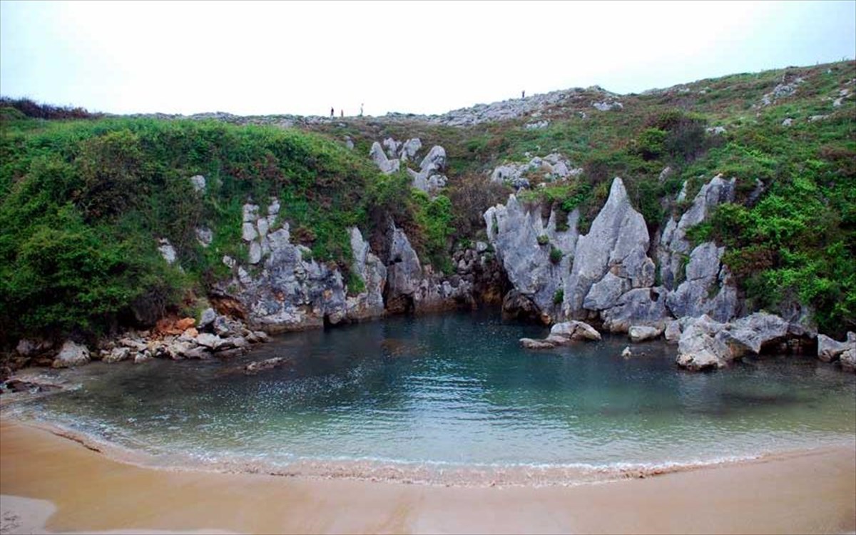 Με μήκος μόλις 50 μέτρων, η παραλία Gulpiyuri ίσως δεν θα άξιζε τον κόπο αν δεν είχε την ιδιαιτερότητα μιας παραλίας της ενδοχώρας. Έχει δημιουργηθεί σε μια… τρύπα και περιτριγυρίζεται από πράσινο χορτάρι και λόφους ασβεστόλιθου, ενώ είναι τόσο μικρή που η άμμος σχεδόν εξαφανίζεται στην πλημμυρίδα και δεν υπάρχει σχεδόν καθόλου νερό στην άμπωτη.