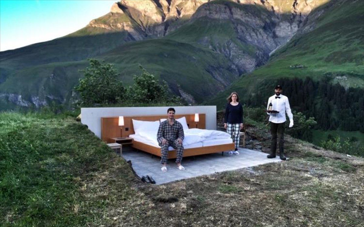 Ένα ιδιαίτερο ξενοδοχείο, το Null Stern, αποφάσισε να φτιάξει κάτι ξεχωριστό και άκρως…μίνιμαλ: ένα δωμάτιο χωρίς τοίχους και ταβάνι, στις μέση των ελβετικών Άλπεων, στο οποίο βρίσκεται μόνο ένα… κρεβάτι.