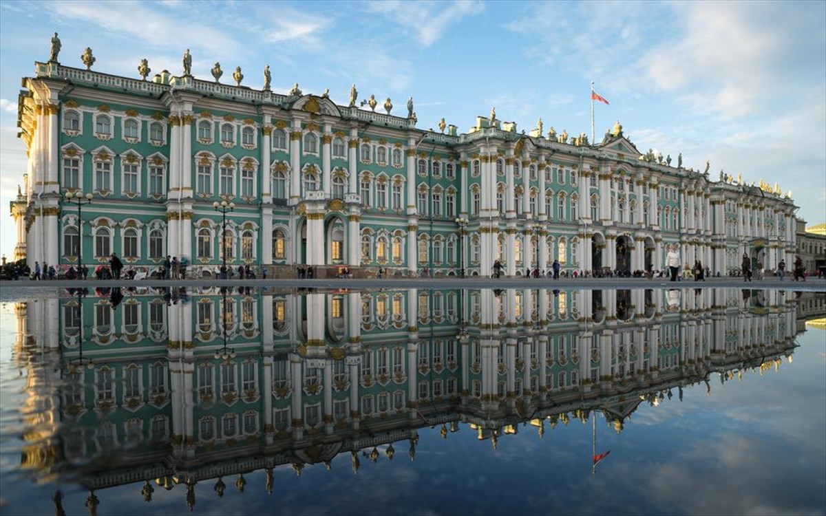 Έχοντας χτιστεί στα μέσα του 18ου αιώνα, στην αυτοκρατορική Ρωσία από τη Μεγάλη Αικατερίνη, προστάτιδα των τεχνών, το Hermitage δεσπόζει στις όχθες του ποταμού Νέβα. Αποτελείται από έξι κτήρια, στα οποία συμπεριλαμβάνονται τα Χειμερινά Ανάκτορα, το Μικρό Ερμιτάζ και το Παλιό Ερμιτάζ, τα οποία από μόνα τους αποτελούν αρχιτεκτονικούς θησαυρούς. Πέραν των αυγών Faberge, το Hermitage έχει μια από τις πλουσιότερες συλλογές αρχαιοτήτων και δυτικοευρωπαϊκής τέχνης.