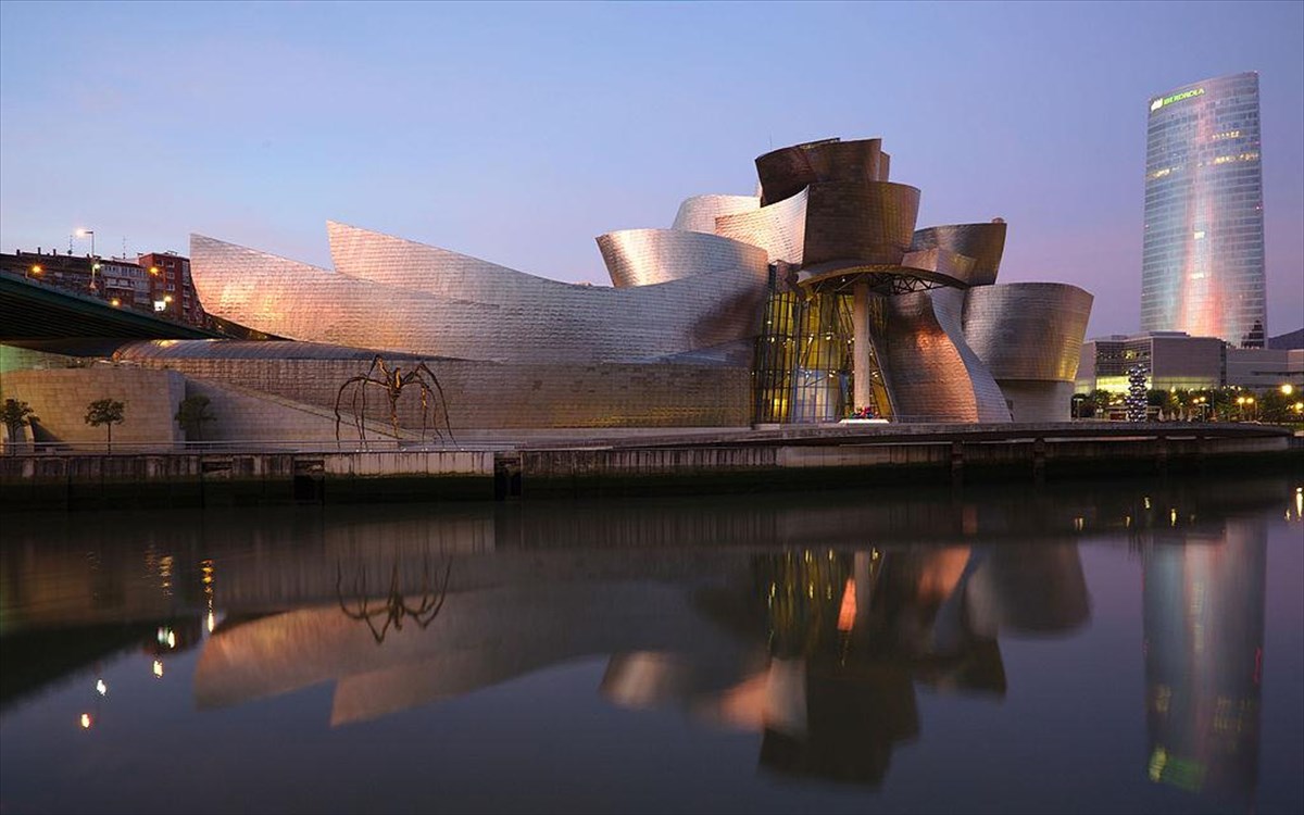 www.wikipedia.orgΤο πιο διάσημο δημιούργημα του Frank Gehry μπορεί να άνοιξε τις πύλες του στο κοινό μόλις το 1997, αλλά γρήγορα αναγνωρίστηκε ως ένα από τα σπουδαιότερα κτήρια του 20ου αιώνα. Το Guggenheim ήταν μια πρωτοβουλία των τοπικών αρχών του Μπιλμπάο, της τέταρτης μεγαλύτερης πόλης της Ισπανίας, στην καρδιά της χώρας των Βάσκων. Με το λιμάνι της πόλης να έχει μαραζώσει, οι αρχές έδωσαν το κατάλληλο οικονομικό κίνητρο στο Solomon R Guggenheim Foundation για ένα νέο μουσείο στο Μπιλμπάο. Ο Gehry, γνωστός για τις ανορθόδοξες μεθόδους και περιβαλλοντολογικές ανησυχίες του, επιλέχθηκε για να αποδώσει ένα ασυνήθιστο όραμα.