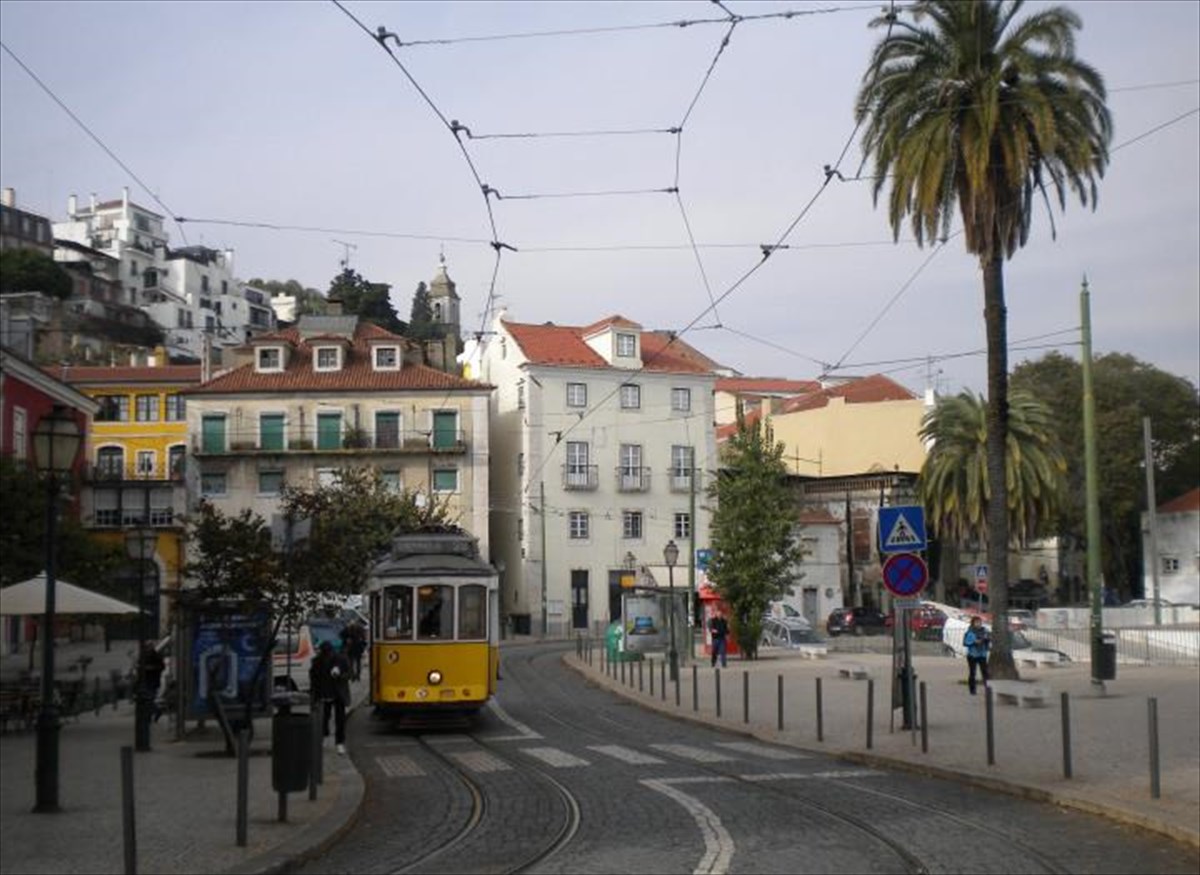 Καθισμένοι στα ξύλινα καθίσματά του θα θαυμάσετε με την ησυχία σας τις προσόψεις των κτηρίων με τα χαρακτηριστικά γαλάζια πλακάκια, τα azulejos, θα κάνετε χάζι τις γειτόνισσες που κουβεντιάζουν απλώνοντας την μπουγάδα τους και θα φωτογραφήσετε τα εντυπωσιακά ασπρόμαυρα πεζοδρόμια, τα περιβόητα calcada portuguesa.
