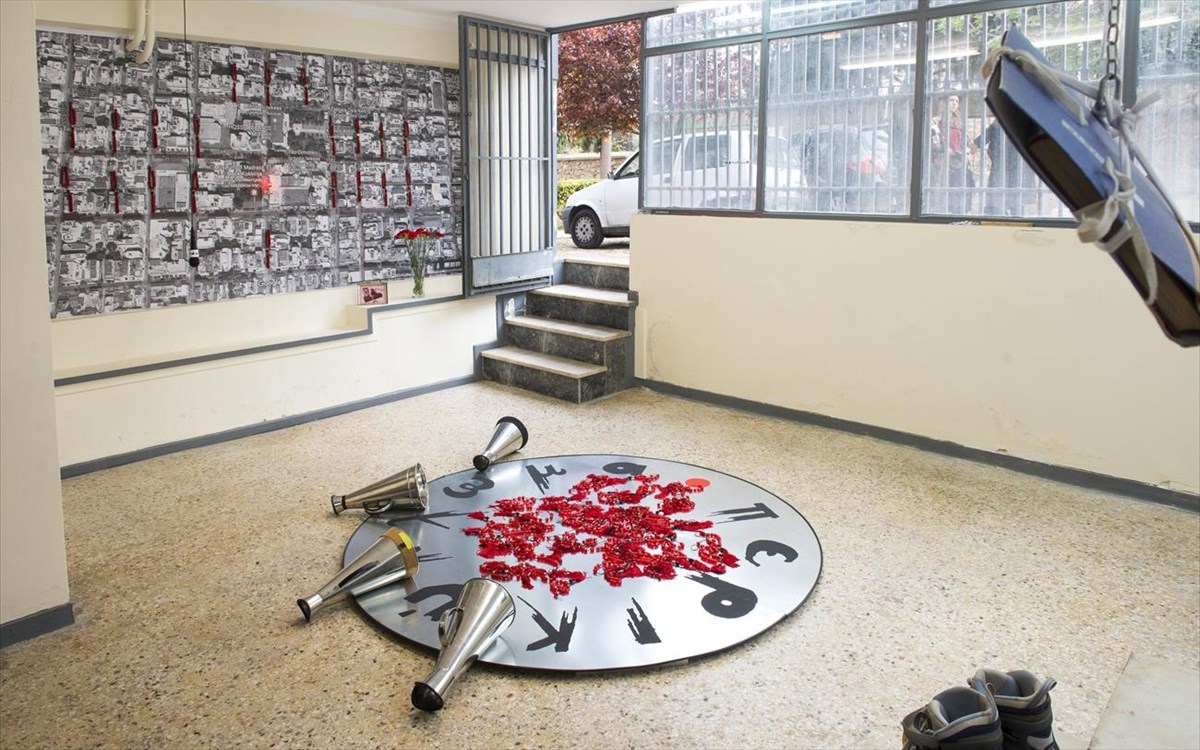 φωτογραφία: Άγγελος ΓιωτόπουλοςΜαίρη Ζυγούρη, Το Περικύκλωμα: Κοκκινιά 1979-Κοκκινιά 2017 \ Μ.Ζ. \ Μ.Κ., 2016-17, άποψη εγκατάστασης, Μουσείο Μάντρας Μπλόκου Κοκκινιάς, Αθήνα, documenta 14