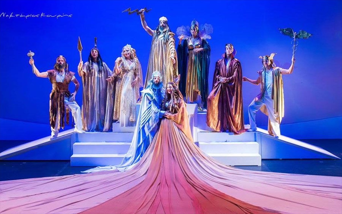 Από εκεί και ύστερα τα παιδιά θα έχουν την ευκαιρία να δουν να ζωντανεύουν μπροστά στα μάτια τους γνωστές και άγνωστες ιστορίες της μυθολογίας μας. Όπως: ΠΡΟΜΗΘΕΑΣ και ΕΠΙΜΗΘΕΑΣ, ΦΙΔΙ και ΓΑΙΔΑΡΟΣ, ΔΕΥΚΑΛΙΩΝ και ΠΥΡΡΑ, γνωριμία ΔΙΑ και ΗΡΑΣ, διαμάχη ΠΟΣΕΙΔΩΝΑ και ΑΘΗΝΑΣ, ΠΟΣΕΙΔΩΝΑΣ και ΑΜΦΙΤΡΙΤΗ, ΗΦΑΙΣΤΟΣ και ΗΡΑ, ΔΗΜΗΤΡΑ και ΑΡΠΑΓΗ ΤΗΣ ΠΕΡΣΕΦΟΝΗΣ, ΑΠΟΛΛΩΝ και ΜΑΝΤΕΙΟ ΤΩΝ ΔΕΛΦΩΝ, ΑΡΤΕΜΙΣ, η γέννηση του ΕΡΜΗ, ΑΡΗΣ, ΑΦΡΟΔΙΤΗ και ΑΓΧΙΣΗΣ, κ.α. Όλες οι παραπάνω ιστορίες, απόλυτα μελετημένες και τεκμηριωμένες, γεμάτες χιούμορ (μια που, όπως ξέρουμε, οι αρχαίοι θεοί των Ελλήνων είχαν τα ελαττώματα των ανθρώπων) και συνδεδεμένες με έξυπνο και εύκολο τρόπο, δημιουργούν μια παράσταση προσεγμένη στην λεπτομέρεια, που σκοπό έχει να μαγέψει και τον πιο μικρό μας θεατή.