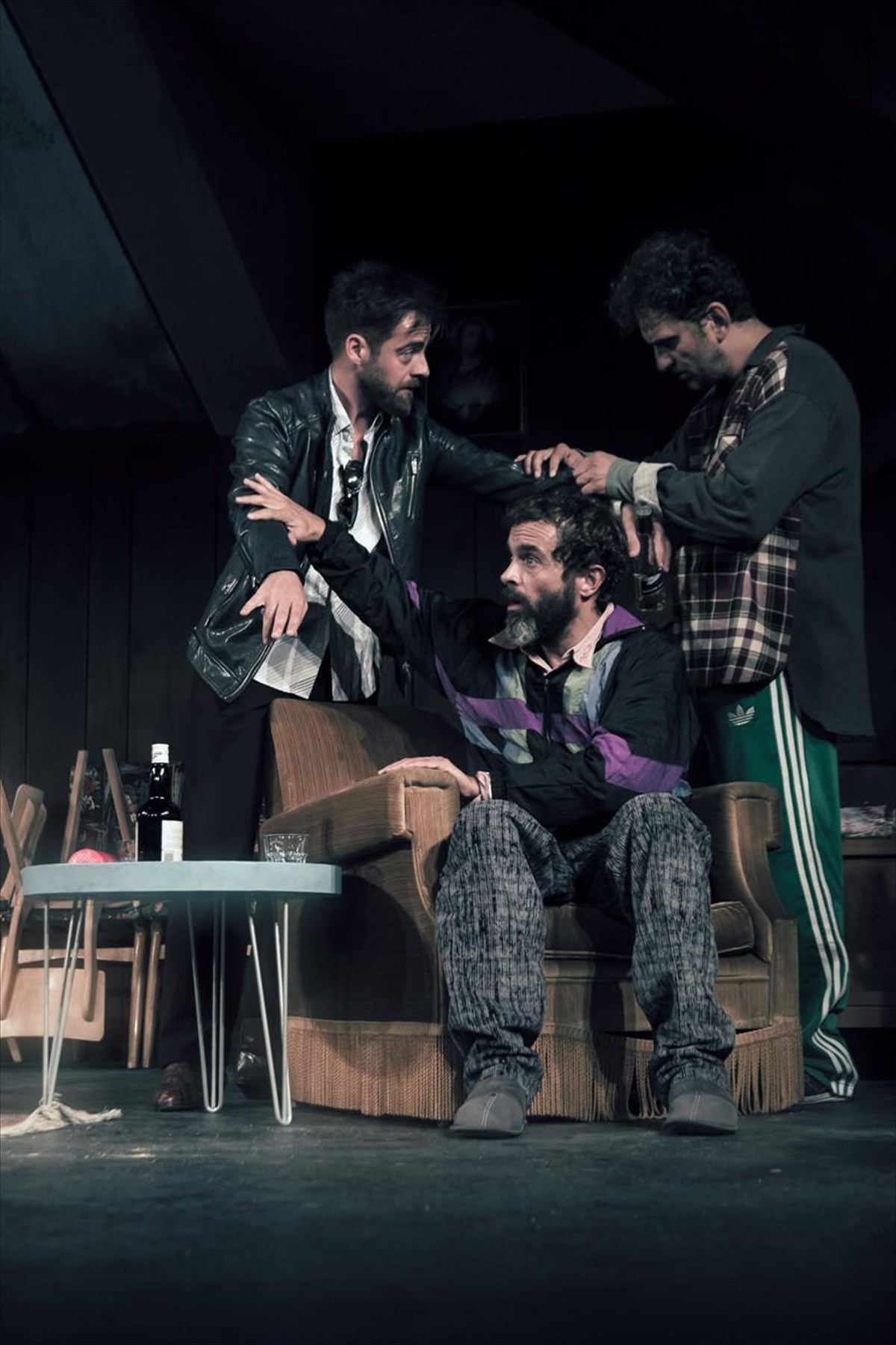 Τέσσερις άνθρωποι που έχουν αποτύχει σε όλα, εκτός από την ικανότητά τους να παραμείνουν μαζί. Ο Ρίτσαρντ, ο μεγάλος αδελφός, τυφλός, μέθυσος, με παιδικό θυμό κι ανελέητο χιούμορ, καταπιέζει με την αδυναμία του τον αδελφό του, σαν άλλος Χαμ από «Το τέλος του Παιχνιδιού». Ο Σάρκυ, ο μικρότερος, «εγγύηση αποτυχίας», απολυμένος από δεκάδες δουλειές, μόνιμα οργισμένος, με έναν ανεκπλήρωτο έρωτα για τη γυναίκα του αφεντικού του, προσπαθεί να ξαναπιάσει από κάπου το νήμα της ζωής του. Ο Ιβάν, αδύναμος κι επιπόλαιος, δεν έχει πάει σπίτι του δυο μέρες, ζώντας με το φόβο της γυναίκας του, παρασυρμένος μόνιμα απ’ τη θαλπωρή του ποτού και των φίλων. Ο Νίκυ, με ψευδαισθήσεις μεγαλείου, και με όνειρο να φτιάξει μια αυτοκρατορία από την εμπορία τυροκομικών, τώρα που κανένας γονιός δεν τον εμπιστεύεται για μπέιμπισίτινγκ. Κι ο κύριος Λόκχαρτ, ο καταλύτης, ένας μυστηριώδης, γοητευτικός άγνωστος, κομψός κι ευγενικός, μ’ ένα σχέδιο που πρέπει να πετύχει αυτή τη συγκεκριμμένη νύχτα, της παραμονής των Χριστουγέννων. Πέντε άντρες, αυτή τη νύχτα, μακριά από κάθε γυναικεία παρουσία που θα μπορούσε να τους σώσει, ανώριμοι, ανήλικοι, απόλυτα ανθρώπινοι, θα γιορτάσουν, θα παίξουν, θα πιουν όσο δεν πάει άλλο και θα παλέψουν με τους δαίμονές τους.