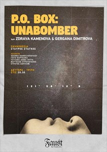 Το βραβευμένο έργο «P.O. BOX  UNABOMBER» των Zdrava Kamenova και Gergana Dimitrova ανεβαίνει στον πολυχώρο FAUST, από 25 Φεβρουαρίου και για λίγες μόνο παραστάσεις, σε μετάφραση  Δημήτρη  Βέργαδου και σκηνοθεσία Σταύρου Στάγκου,  με τους Ιωάννα Κανελλοπούλου, Γωγώ Καρτσάνα, Τατιάνα Άννα Πίττα,  Βαγγέλη Στρατηγάκο,  Στράτο Σωπύλη.
