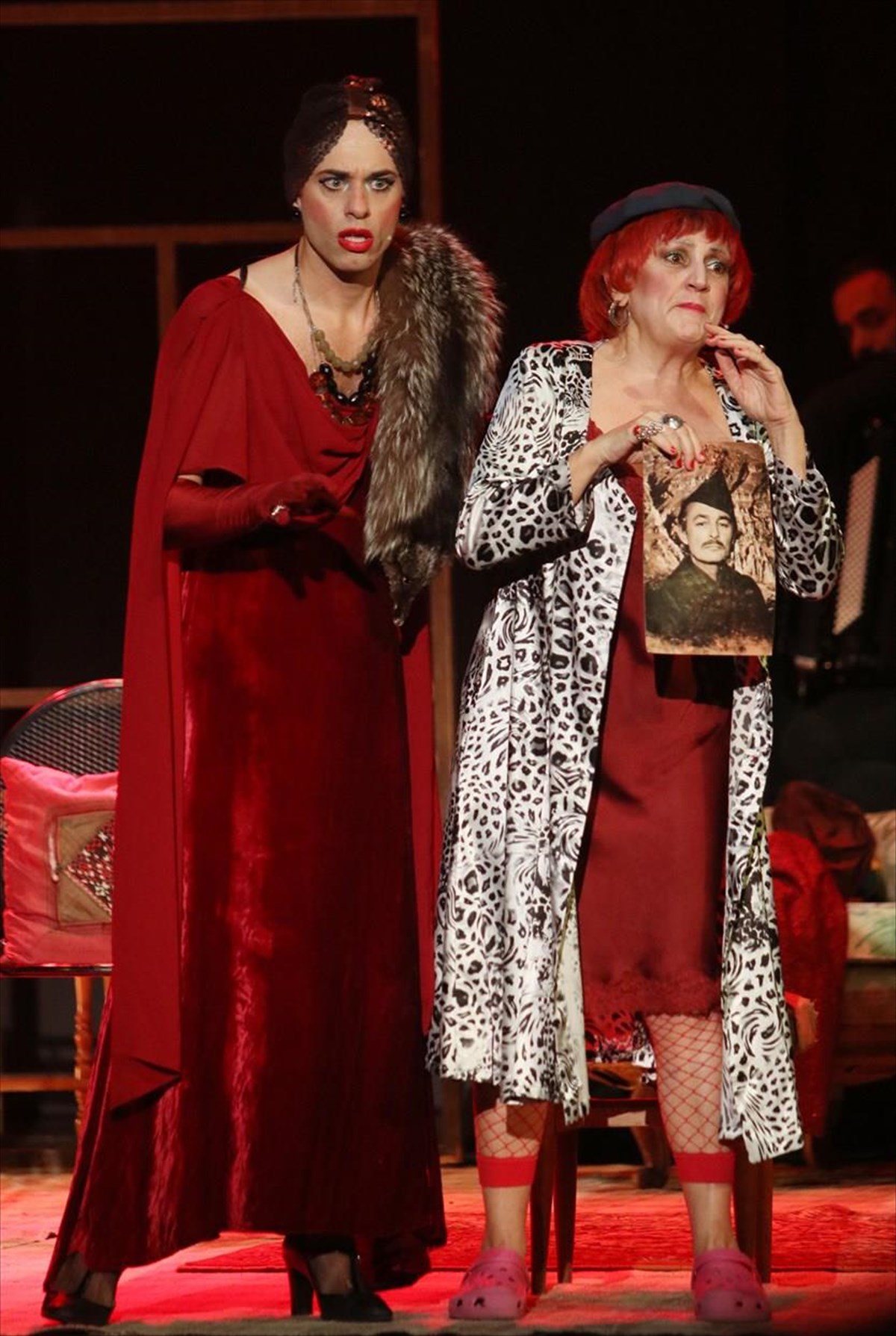 Elli Poupoulidou/NDPΣτη σκηνή βλέπουμε μια Μανέ να τα δίνει όλα. Δροσερή και πειστική, προσαρμόζεται αξιοθαύμαστα στις χρονικές μετατοπίσεις ανοίγοντας τη ρόμπα και ενεργοποιώντας την υποκριτική της ευστροφία. Φαίνεται να πιστεύει στη δύναμη του χαρακτήρα της και τον υπηρετεί με τέτοια προσήλωση που γίνεται σαφώς καλύτερη στα δραματικά κομμάτια και τις μουσικές «παρεμβολές». Δεν την βοηθάνε, η αλήθεια είναι, η ενοχλητική φωνή που υιοθετεί σε κάποιες σκηνές ούτε οι επαναλαμβανόμενες ατάκες και τα φθηνά- χοντροκομμένα αστεία στα κωμικά κομμάτια, αν και στο δεύτερο μέρος της παράστασης κάθονται όλα καλύτερα- εκτός από την περούκα που δεν κάθεται ούτε στιγμή ωραία, αν και καταλαβαίνουμε γιατί την επέλεξαν.