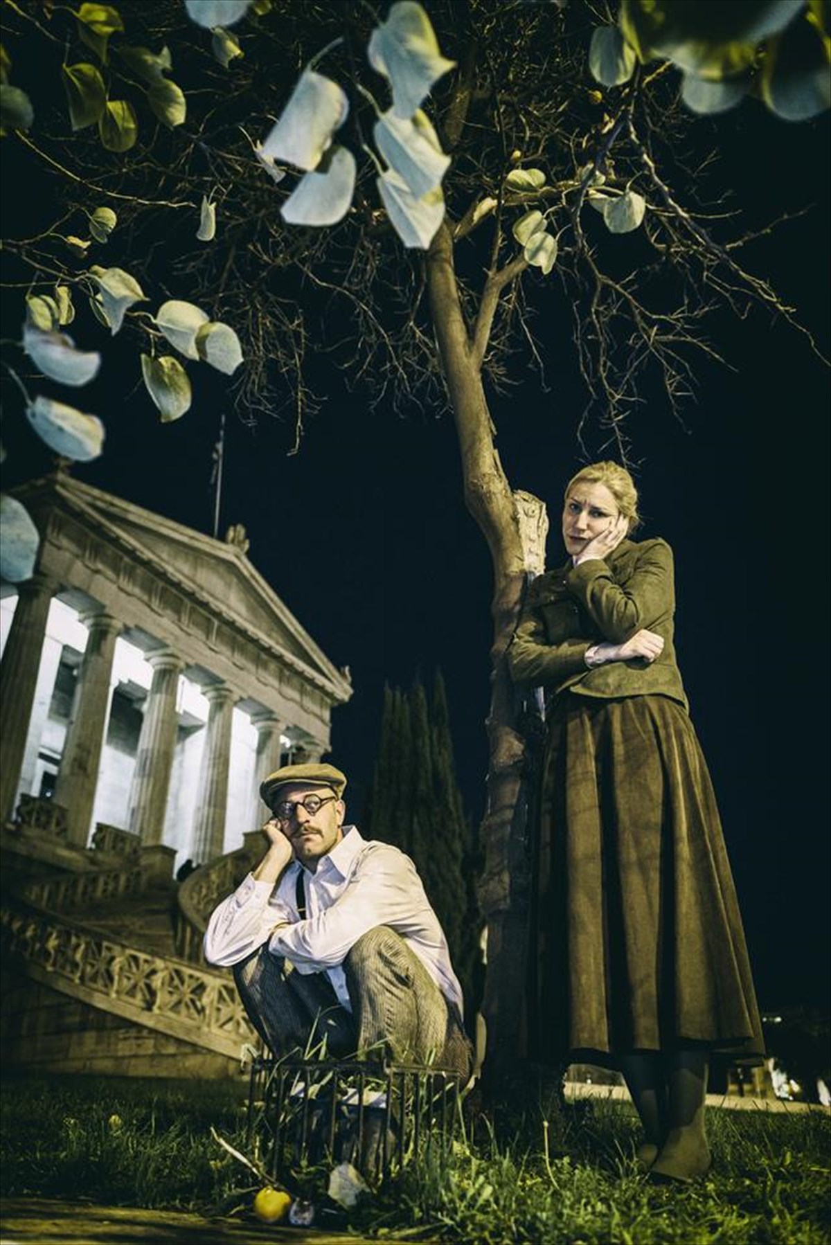 Ο Μπέκετ, πανταχού παρών σ' αυτό το έργο, γίνεται θεατρικό πρόσωπο, γίνεται εμμονή, ζει, ταξιδεύει και γράφει αλλά δεν έρχεται ποτέ.