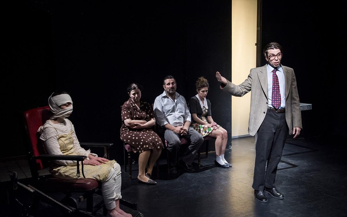 Επί σκηνής οι ηθοποιοί: Ηλίας Βαλάσης, Μαρία Κάτσενου, Στέλιος Δημόπουλος, Αθανασία Κουρκάκη, Ελωρίς Αλπανίδου