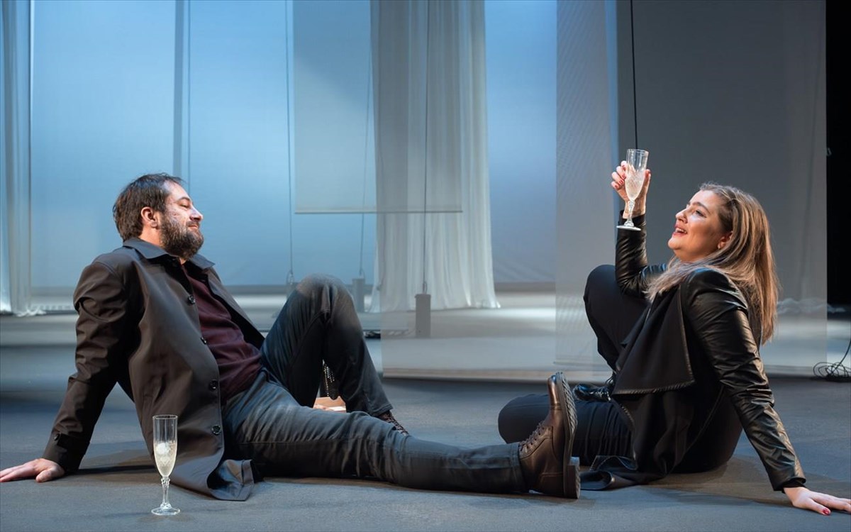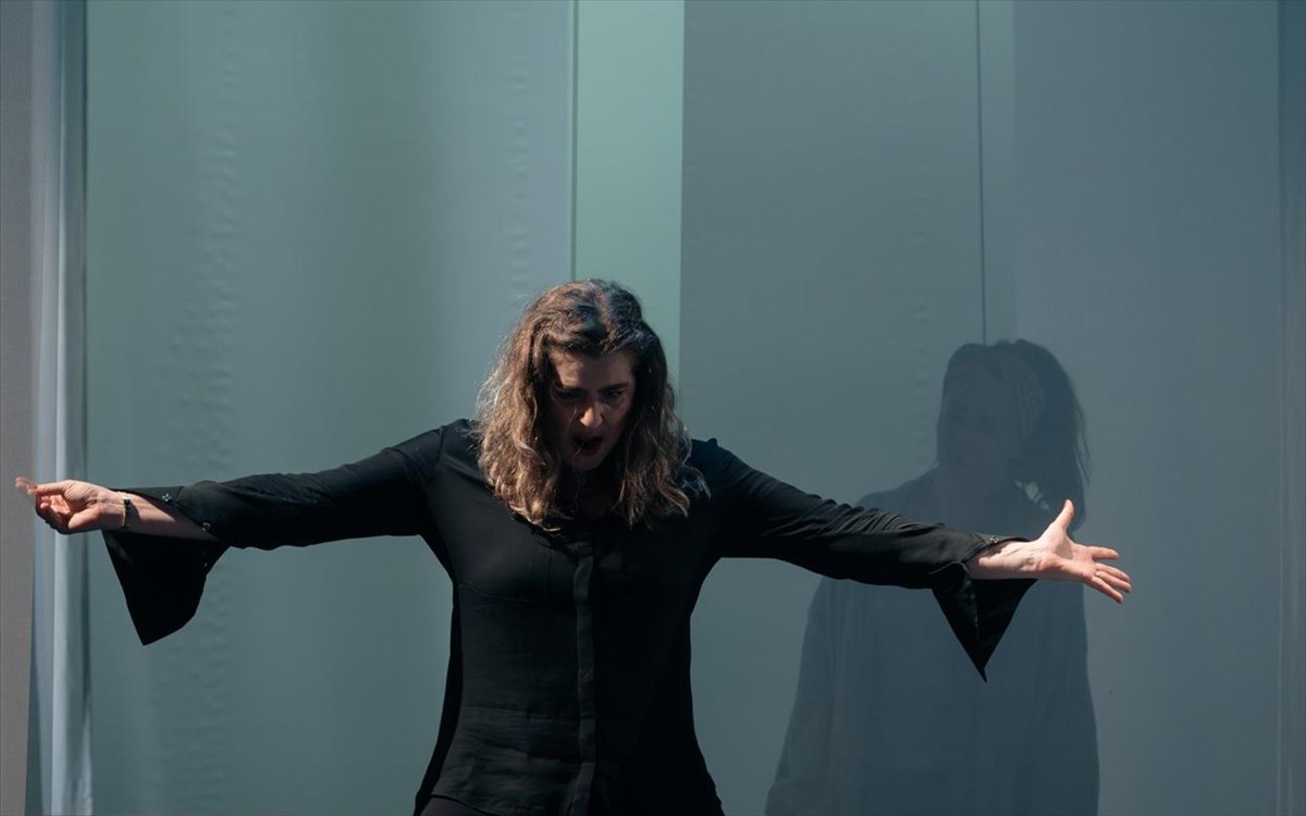 ©Patroklos_SkafidasΜε μια λιτή προσέγγιση του χώρου (σκηνικά: Ευαγγελία Θεριανού), με λεπτά υφάσματα που λειτουργούν ως διάφανοι τοίχοι, στη σκηνή βρίσκουμε ελάχιστα σκηνικά αντικείμενα που αλλάζουν ανάλογα με την εξέλιξη της σκηνικής δράσης.