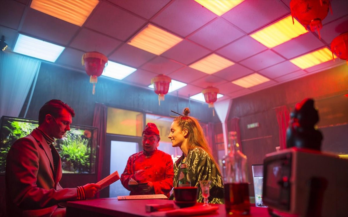 Arturs PavlovsΈνα κινέζικο εστιατόριο, με τα κρεμαστά φαναράκια και τους μάγειρες πάνω από τις κατσαρόλες με τα νουντλς, μια κατάλευκη γκαλερί της Νέας Υόρκης με νέον επιγραφές, το διπλό κρεβάτι με τα ανακατωμένα κλινοσκεπάσματα ενός καλλιτέχνη από τη Λετονία που έμελλε να αλλάξει την ιστορία της σύγχρονης τέχνης, οθόνες ύψους επτά μέτρων που ορθώνονται στην Κεντρική Σκηνή. Το σκηνικό αυτό, κάτι μεταξύ κινηματογραφικού πλατό και video art πρότζεκτ, υπό τους ήχους δυνατών ατμοσφαιρικών beats, θα καταληφθεί από διάσημους ζωγράφους και Κινέζους μάγειρες, γκαλερίστες, εμπόρους τέχνης και πλαστογράφους, μαικήνες της τέχνης και υπάλληλους παράδοσης φαγητού.