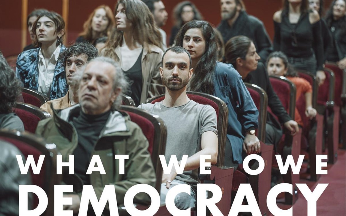 Η παράσταση - εγκατάσταση “WHAT DO WE OWE DEMOCRACY / ΤΙ ΟΦΕΙΛΟΥΜΕ ΣΤΗ ΔΗΜΟΚΡΑΤΙΑ” είναι ένα ανοιχτό μουσείο συμπεριφορών στο οποίο οι θεατές καλούνται να κινηθούν σε διαφορετικές συνθήκες, χώρους και τοπία και να ανασυνθέσουν μόνοι τους ερωτήματα και απαντήσεις, ταμπού και αποκαλύψεις.