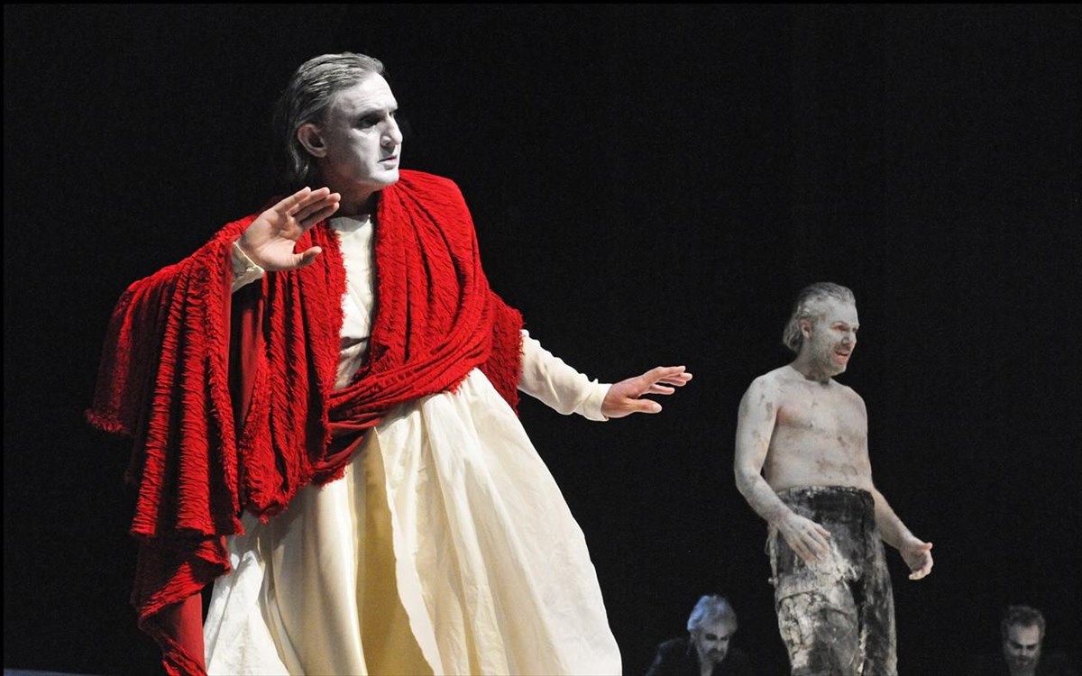 G.CHRYSOCHOIDIS Μπορεί η ανάθεση στον Άκη Σακελλαρίου ενός γυναικείου ρόλου να προξενεί εντύπωση, αλλά αυτή η επιλογή δεν προέκυψε για λόγους συμβολισμών: «Ξεκινάω πάντα από το πώς μου μιλάει το έργο, οπότε τα ζητήματα των συμβολισμών ερμηνεύονται εκ των υστέρων. Η πρόθεσή μου είναι ο λόγος των Περσών να φτάσει πάρα πολύ καθαρά, μέσα από μια φόρμα αφαιρετική, όχι μόνο στο εικαστικό μέρος της παράστασης αλλά και στην εκφορά του λόγου. Ο λόγος είναι το κυρίαρχο στοιχείο.