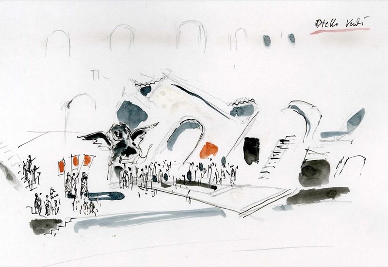 Όπως αναφέρει στο σκηνοθετικό του σημείωμα ο διαπρεπής σκηνογράφο και σκηνοθέτης, ο οποίος φιλοτεχνεί για τη συγκεκριμένη παραγωγή της Εθνικής Λυρικής Σκηνής και τα εντυπωσιακά κοστούμια: «...Ο σκηνικός χώρος στον οποίο διαδραματίζεται η παράσταση αποδίδει ακριβώς αυτό το χάος, τον κόσμο του παραλόγου, έτσι όπως προκλήθηκε από τον Ιάγο κι όπως σταδιακά καταλαμβάνει το πνεύμα του Οθέλλου.
