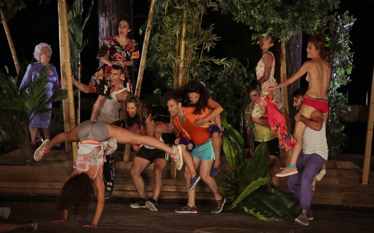 Στη συγκεκριμένη περίπτωση δεν αξίζει όμως να εστιάσουμε σε όλα αυτά. Υπάρχει μια πρωτοπορία στον τρόπο της αφήγησης η οποία σε μαγεύει και σε συγκλονίζει και αν έλειπε ο,τιδήποτε από την παράσταση ίσως να μην είχε την ίδια ισχυρή επίδραση πάνω μας. Ο συνδυασμός της άψογης κινησιολογίας της Αμαλίας Μπένετ με την ονειρική μουσική του Άγγελου Τριανταφύλλου και τα εντυπωσιακά σκηνικά της Έλλης Παπαγεωργακοπούλου δημιουργεί ένα θέαμα που σε συγκινεί και σε διαπερνά, ιδίως τις στιγμές που λείπουν τα λόγια. Μπορεί τα πουλιά της παράστασης να μη φορούν φτερά, ο τρόπος όμως που κινούνται υπό τις εξαίσιες μελωδίες σου δίνει την εντύπωση πως ίπτανται. Όλοι οι ηθοποιοί υπηρετούν πιστά το όραμα της παράστασης και από τη στιγμή που φύγαμε από το θέατρο προσπαθούμε να συνειδητοποιήσουμε αν όντως παρακολουθήσαμε σκηνές σαν αυτή που τα πουλιά κάνουν την πρώτη εμφάνισή τους και επιτίθενται στους δύο άνδρες ή αυτή που η ελευθεριότητα και ο ηδονισμός της ιδανικής πολιτείας αποτυπώνονται στο γυμνό ντους μέσα στο δάσος. Και φυσικά δεν μπορούμε να μη μιλήσουμε για το φινάλε με τη χρήση ενός μεγάλου φωτισμένου μπαλονιού, το οποίο επιτείνει την εντύπωση του ονείρου και συγκίνησε ολόκληρο το θέατρο, με τον καθένα ξεχωριστά να έχει να σου πει κάτι διαφορετικό για το λόγο που τον άγγιξε.