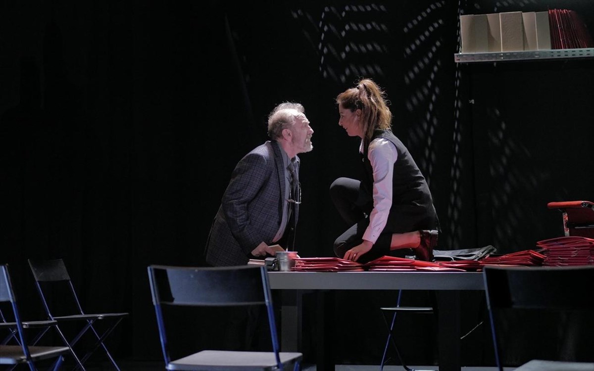 Η ιστορία ξεδιπλώνεται μέσα σε ένα λιτό σκηνικό μεταξύ δυο μόνο προσώπων. Η απλότητα των μέσων διευκολύνει την απόδοση μιας τόσο μεστής ιστορίας ή απαιτεί μεγαλύτερη κατάθεση από τους πρωταγωνιστές;