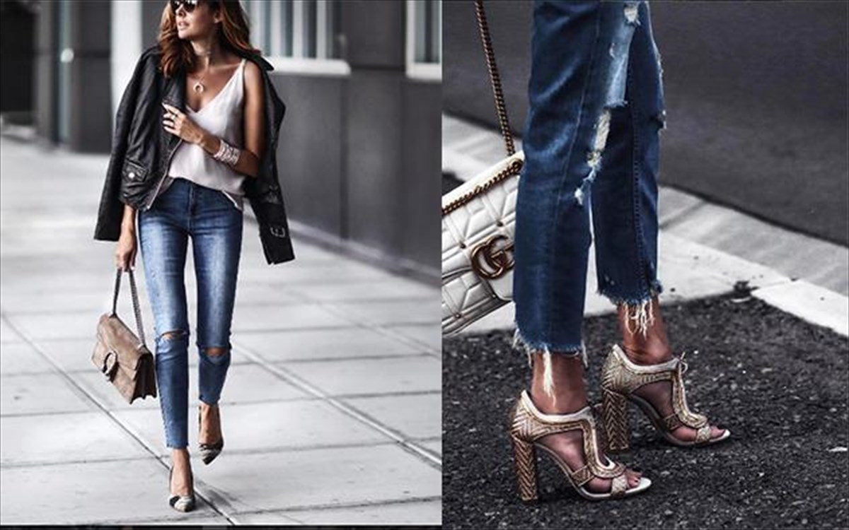 1. Τα παντελόνια της σεζόν κονταίνουν για να αποκαλύψουν τους αστραγάλους. Στην ανάγκη κόψτε το λιγότερο αγαπημένο σας, εφαρμοστό τζιν ή απλώς γυρίστε το ρεβέρ. Δυο φορές είναι αρκετές. Και παίξτε με τα υπόλοιπα αξεσουάρ. Πάνινα φλατ ή ψηλοτάκουνα πέδιλα.