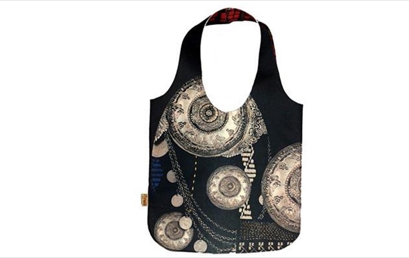 Κάπως έτσι παρατηρώ και ξεχωρίζω από τη συλλογή με αξεσουάρ και κοσμήματα στο Πωλητήριο του Μουσείου Μπενάκη, μια τσάντα της Βένιας Μητροπάνου, με μετάξι και έθνικ στοιχεία. Για ένα ταξίδι στον χρόνο και διαφορετικές κουλτούρες.