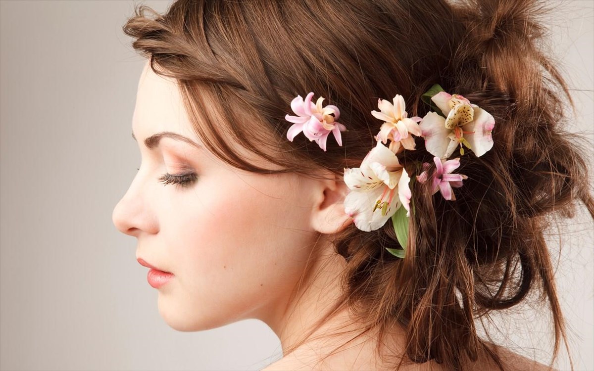 Ανθισμένα στεφάνια. Και ανθισμένες μανόλιες. Για τα κορίτσια που δεν βιάζονται να μεγαλώσουν. Και υφασμάτινα λουλούδια, σαν αληθινά, που στερεώνονται διακριτικά σε κοτσίδες, αλογοουρές, ακόμη καλύτερα σε καλοχτενισμένα αλλά και ατίθασα μαλλιά.
