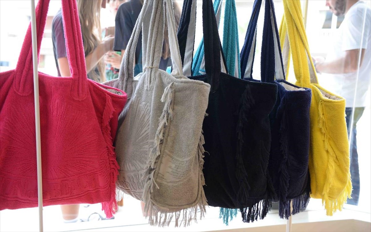 Kynthia Kindeli Δύο κοπέλες, η Μελίνα Πίσπα και η Έλλη Ρούντου, που έκαναν την ανατροπή και ξεκίνησαν μάλλον την τάση με την πολυτέλεια σε μια πετσέτα-έργοτέχνης, θέλησαν να εξελίξουν ακόμη περισσότερο την ιστορία. Για να λανσάρουν και μπουρνούζια της μόδας, υπερμεγέθη καλάθια, ντυμένα πάντα με το ύφασμα της πετσέτας που θέλεις να αγκαλιάζεις και να σε αγκαλιάζει, πελώριες τσάντες σε έντονες αποχρώσεις που χωράνε από το αντιηλιακό και το καπέλο, μέχρι μια …μικρή μετακόμιση στην παραλία ή στις διακοπές, σαν αυτές που συνηθίζουμε να κάνουμε οι γυναίκες που κουβαλάμε παντού τα πάντα.
