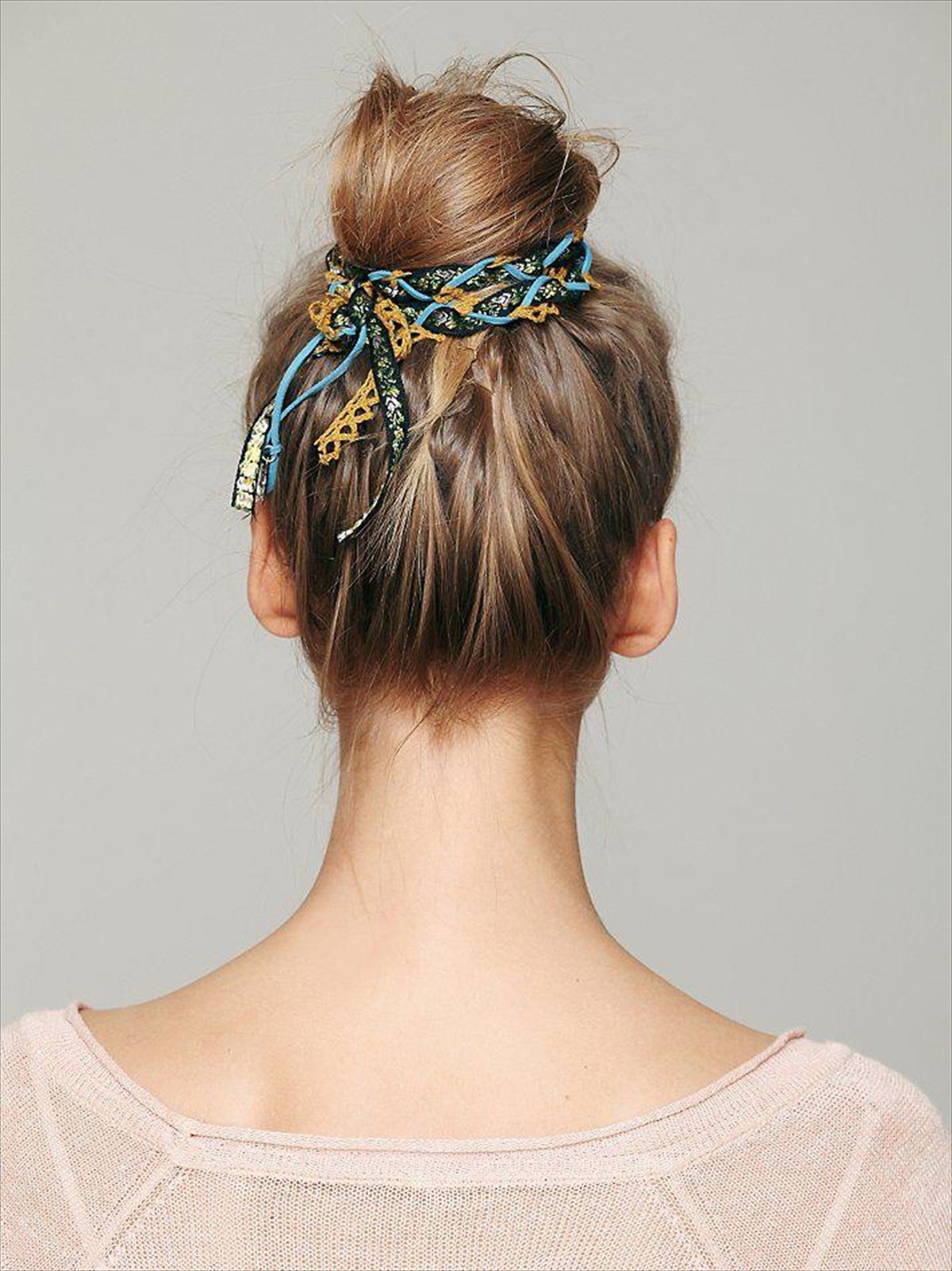 Tα μαλλιά μας έχουν όρεξη για παιχνίδια. Σκύβουμε το κεφάλι μας προς τα κάτω, παίρνουμε ένα λαστιχάκι και τα στερεώνουμε ψηλά, σε έναν γενναιόδωρο κότσο, στολίζοντάς τον είτε με υφασμάτινα μαντήλια και κορδέλες, είτε με αυτοσχέδια λαστιχάκια.