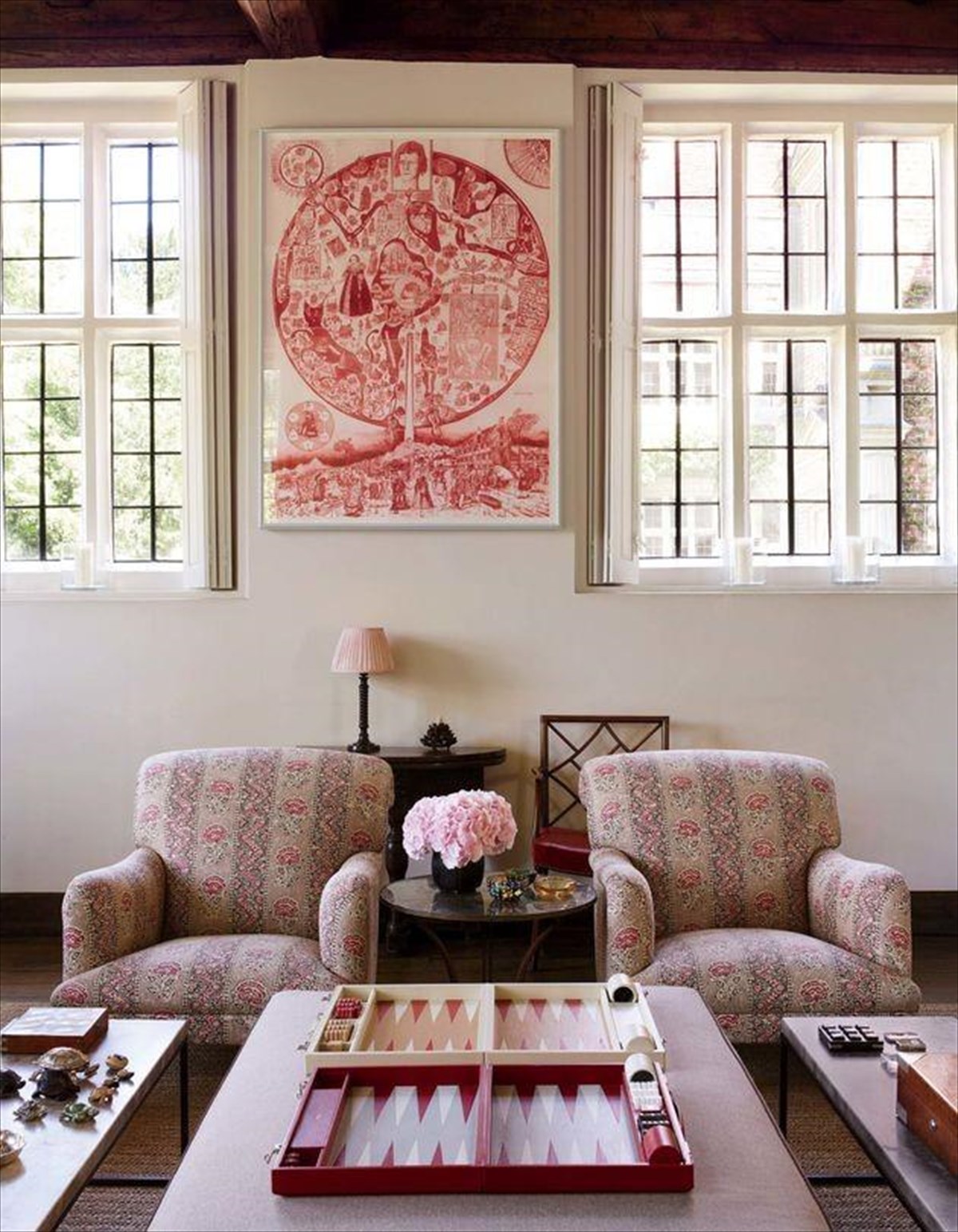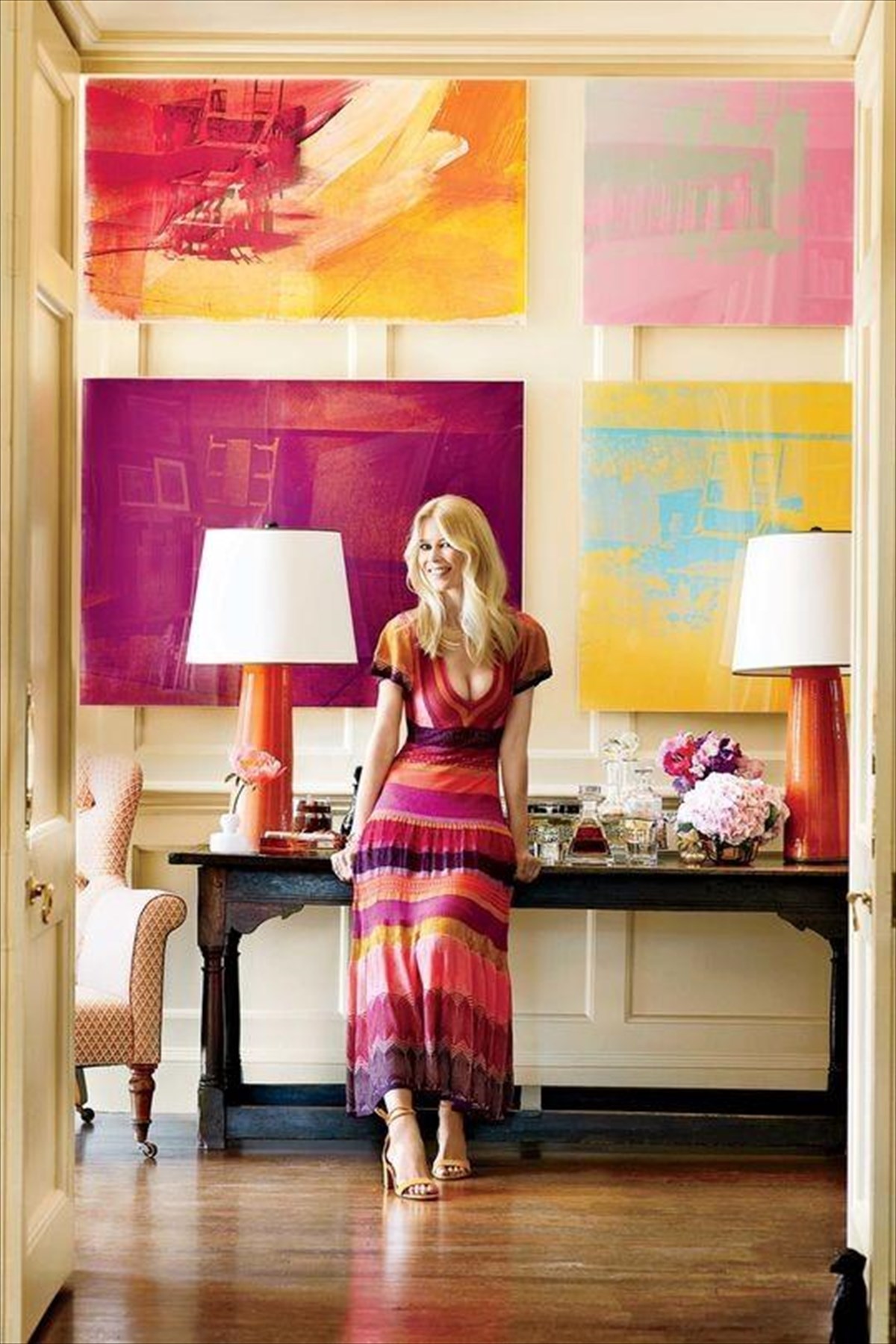 Τα έργα τέχνης στον χώρο μοιάζουν να τα διάλεξε ακριβώς για να ταιριάζουν και με τα ρούχα που φοράει. Αφηρημένα έργα με άποψη, ένας Andy Warhol, ακόμη κι ένα ασπρόμαυρο λιοντάρι σε κάδρο.