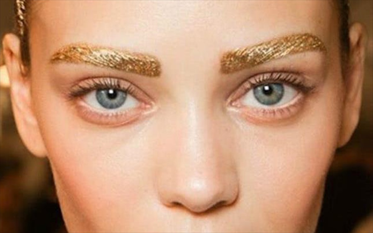 Μεταλλικά φρύδια. Στολισμένα κι αυτά. Απλώνουμε λίγη βαζελίνη πάνω στα φρύδια μας (με την προϋπόθεση μάλλον ότι είναι αρκετά πυκνά) και προσθέτουμε με ένα πινέλο λίγη μπρονζέ σκιά. Τόσο απλό. Προσθέτουμε ή αφαιρούμε ανάλογα με την περίσταση.