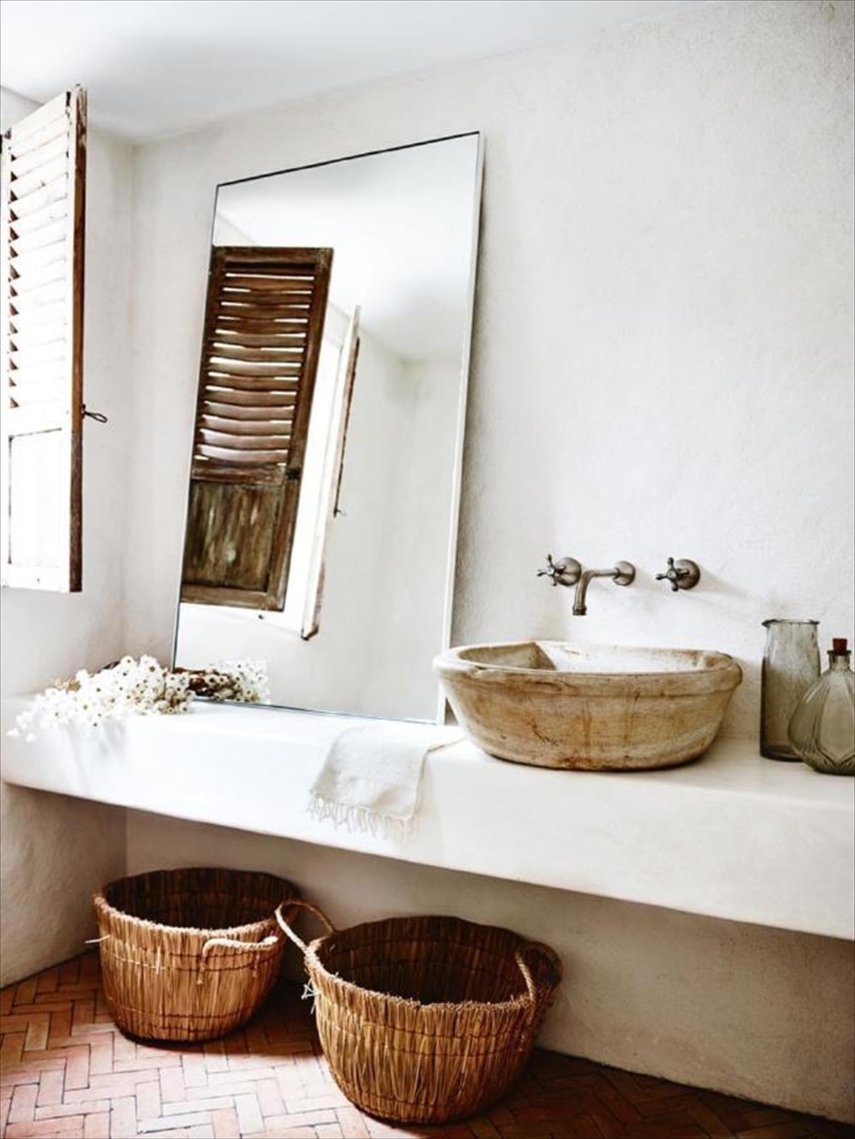 Mπάνια που θυμίζουν ξενοδοχεία διακοπών…Με λιτούς πάγκους και νιπτήρες, νησιώτική διάθεση, ακόμη και κασπώ για τα άπλυτα ή τις πετσέτες, με μπάνια που θυμίζουν μινιμαλιστικά spa.