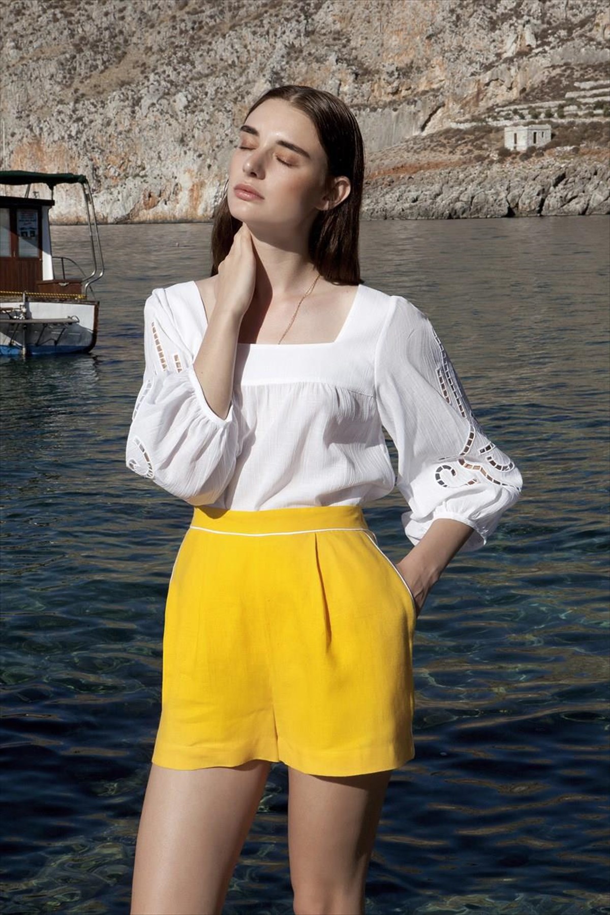 Περσεφόνη, Κλειώ, Φαίδρα… Λευκό, μαύρο, μπλε. Μαύρο (και λευκό) με χρυσά κεντήματα. Κάπως έτσι συστήνεται το ελληνικό brand, Ancient Kallos, που φέρνει το καλοκαίρι πιο κοντά, με πρωτότυπα μοτίβα και πατρόν, απόλυτα σύγχρονα, με νοσταλγία στο παρόν.