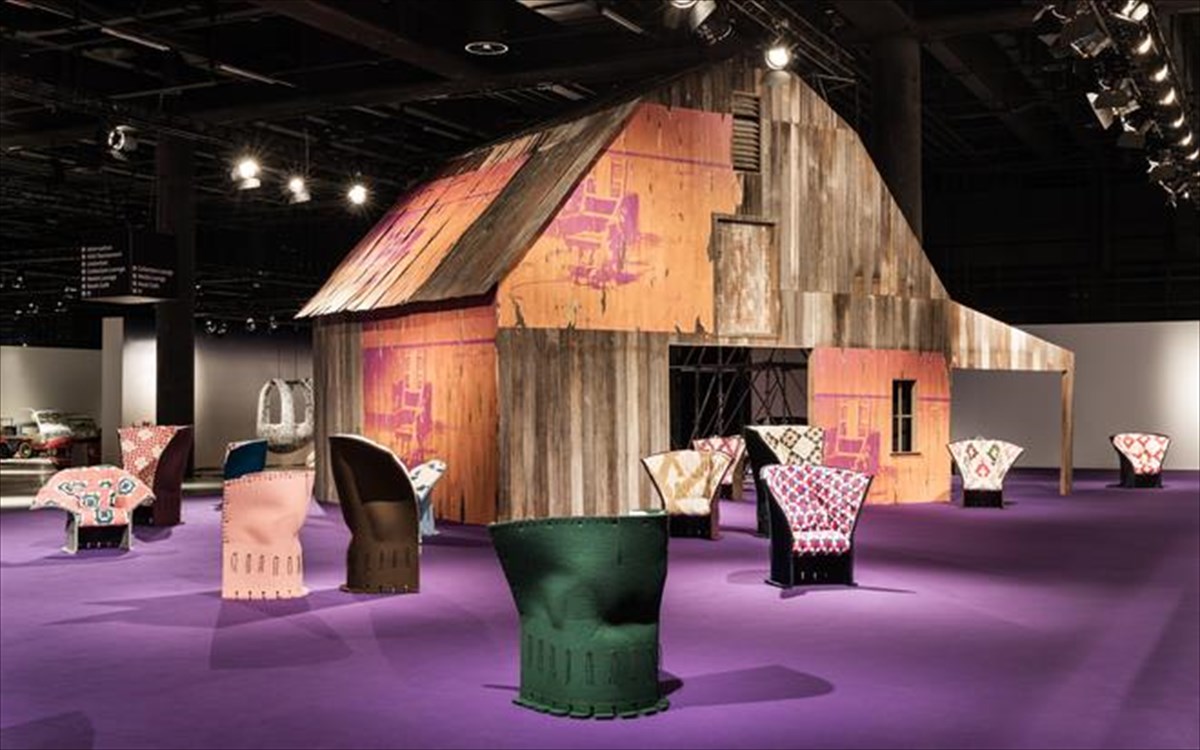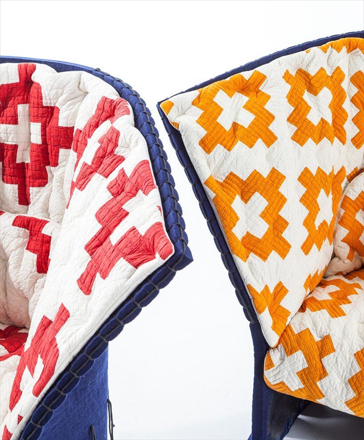 Ένας Αμερικανός σχεδιαστής, λοιπόν, εμπνέεται από την παράδοση του παρελθόντος και υφάσματα του χθες, για να φιτάξει έπιπλα-installations, ιδανικά στημένα σε μια έκθεση, που θα θέλαμε να είναι το σαλόνι του σπιτιού μας.