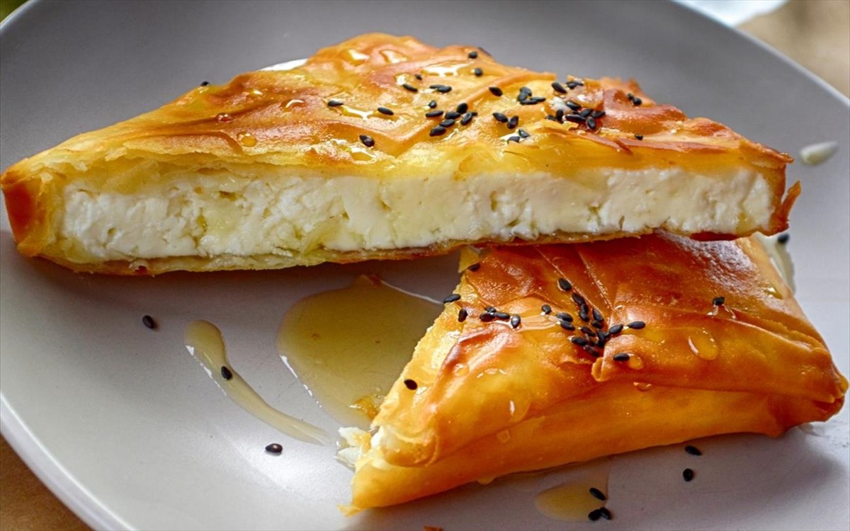 2 κομμάτια φέτας, 1 φύλλο χωριάτικο, 1 ασπράδι αυγού ελαφρά χτυπημένο, 1/4 κ.γ μαύρο σουσάμι, 4 κ.γ. TREA Ελληνικό μέλι Δάσους, 100ml TREA Εξαιρετικό Παρθένο Ελαιόλαδο - Κορωνέικη & Μανάκι.