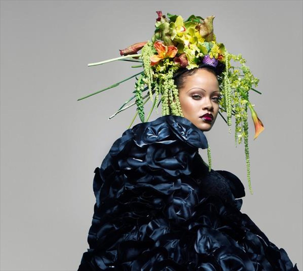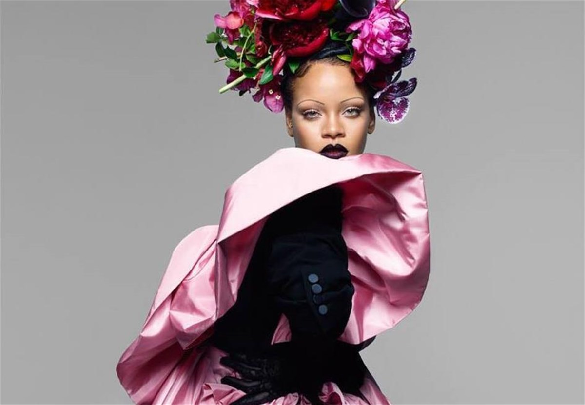 Στο εξώφυλλο της Vogue, η Rihanna φοράει γάντια και ένα μπουκέτο με λουλούδια στο κεφάλι, σε ένα αναγεννησιακό πορτρέτο με άρωμα από τη δεκαετία του '30 και ξεχασμένες σταρ του παρελθόντος αλλά και ηθοποιούς του βωβού κινηματογράφου.