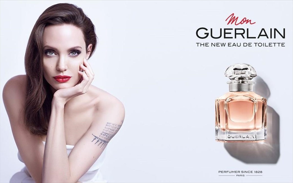Τέλεια επιδερμίδα, σχεδόν γυμνή, μαλλιά τραβηγμένα πίσω, κόκκινο κραγιόν. Στην αρχή αναρωτιέσαι τι διαφημίζει η διάσημη Αμερικανίδα ηθοποιός, και μόλις διαβάζεις τη φράση Mon Guerlain, καταλαβαίνεις ότι πρόκειται για το δικό της άρωμα.