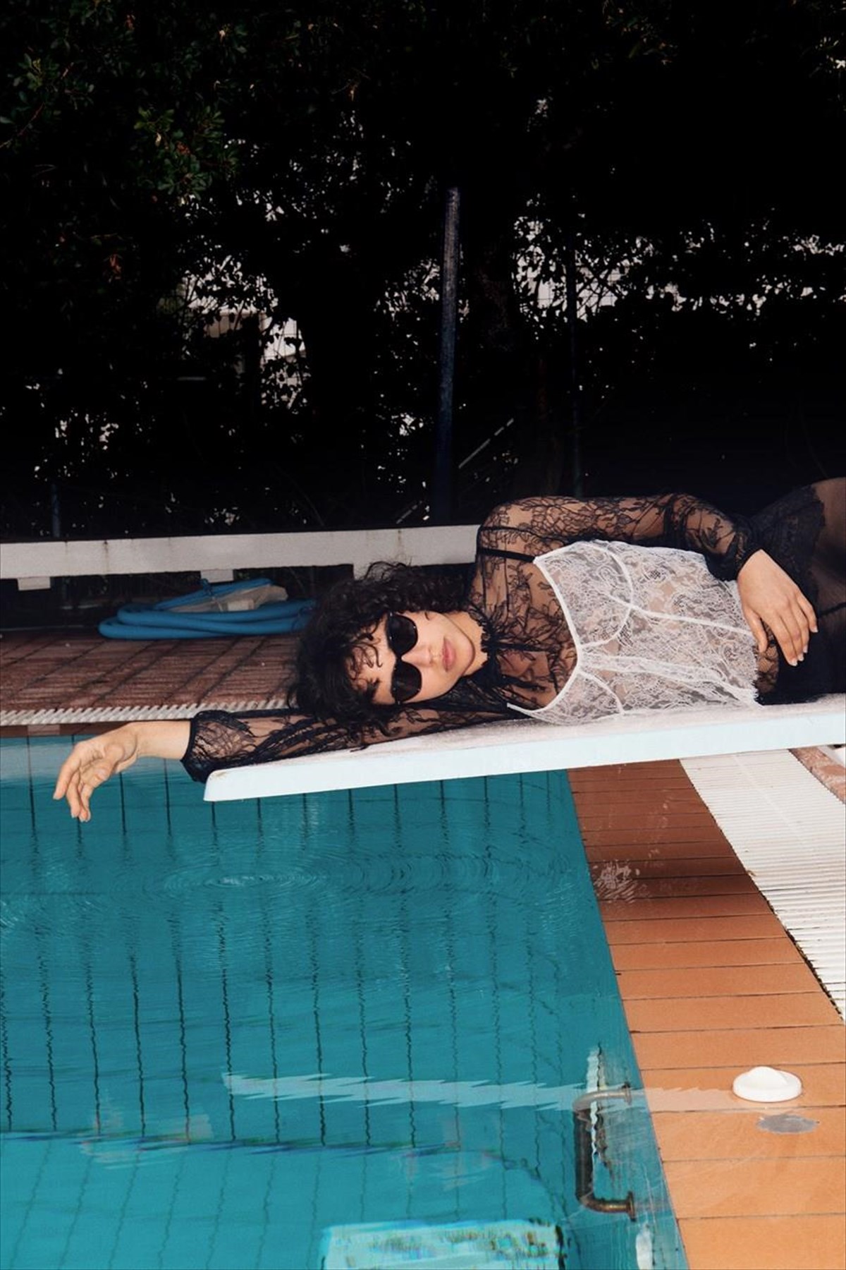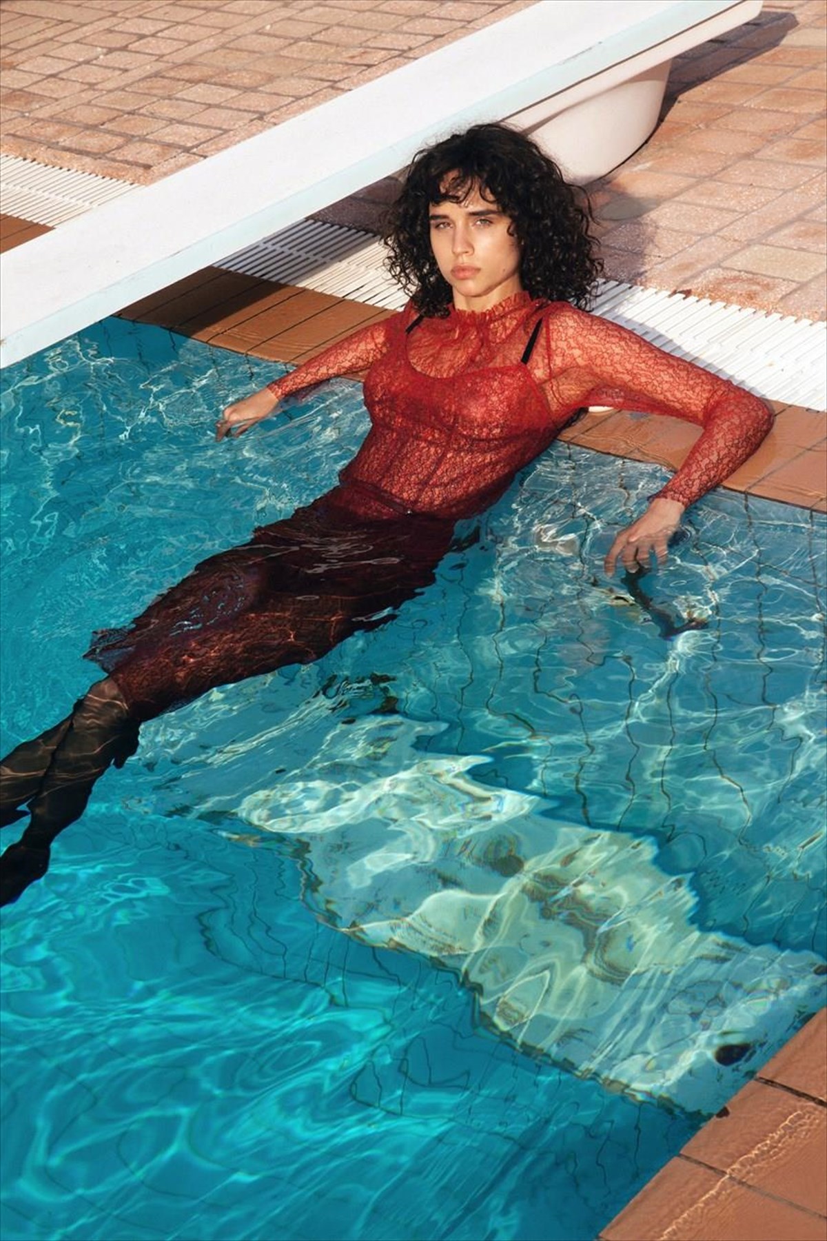 Για να δούμε το μοντέλο της με μαύρο, ασύμμετρο τοπ, με κρυφά μηνύματα, να παίζει με σαπουνόφουσκες στην πισίνα, με ένα ψηλόμεσο παντελόνι που μας θυμίζει τα μπλε, ναυτικά παντελόνια που συνήθιζε να σχεδιάζει η Coco Chanel για να απελευθερώσει τις γυναίκες του τότε.