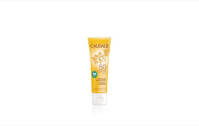 Anti-wrinkle Face Suncare SPF50, Caudalie: Αντηλιακή κρέμα προσώπου με αντιξειδωτικό σύμπλοκο και ισχυρή αντιγηραντική δράση (στα φαρμακεία).