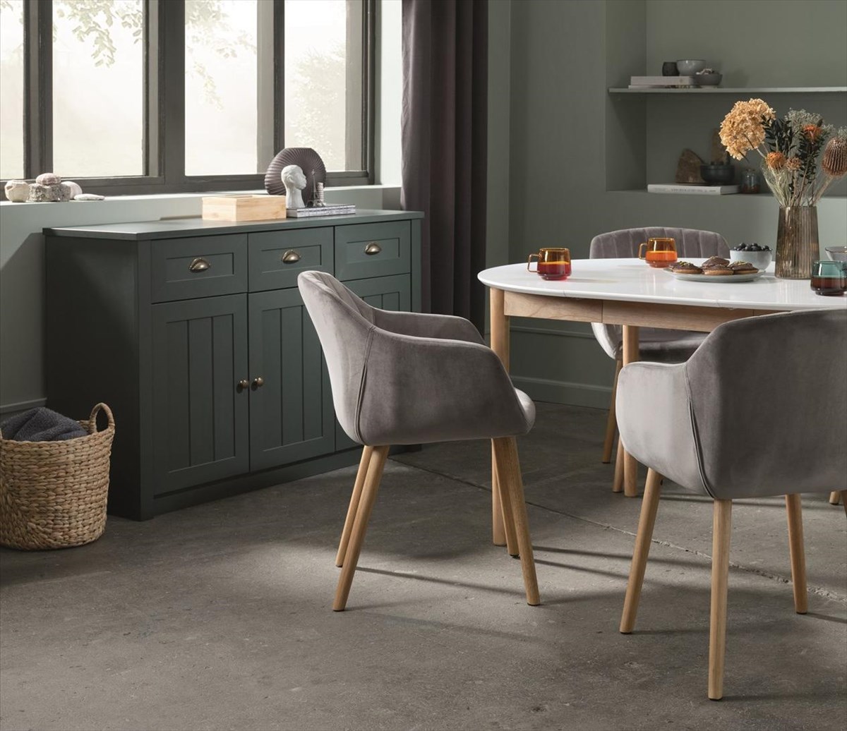 Δημιουργείστε μια διαχρονική βάση με έπιπλα σε κλασσικά χρώματα και σχέδια. Ένα στρογγυλό τραπέζι και μερικές άνετες καρέκλες δημιουργούν το τέλειο περιβάλλον για ζεστό δείπνο, παιχνίδια και συζητήσεις. Ο minimal σχεδιασμός ενός στρογγυλού τραπεζιού το καθιστά ιδανικό για μικρές τραπεζαρίες ενώ ο συνδυασμός του με καρέκλες με επένδυση το συμπληρώνουν και το εξισορροπούν. Έχοντας ως βάση τα κλασσικά έπιπλα μπορείτε να διακοσμήσετε την τραπεζαρία σας όπως θέλετε. Για να αποκτήσετε αυτό το στυλ χρησιμοποιήστε στη διακόσμησή σας πολύχρωμα ποτήρια, διακοσμητικά κουτιά και καλάθια, αλλά και αποξηραμένα λουλούδια και άλλα στοιχεία από τη φύση.