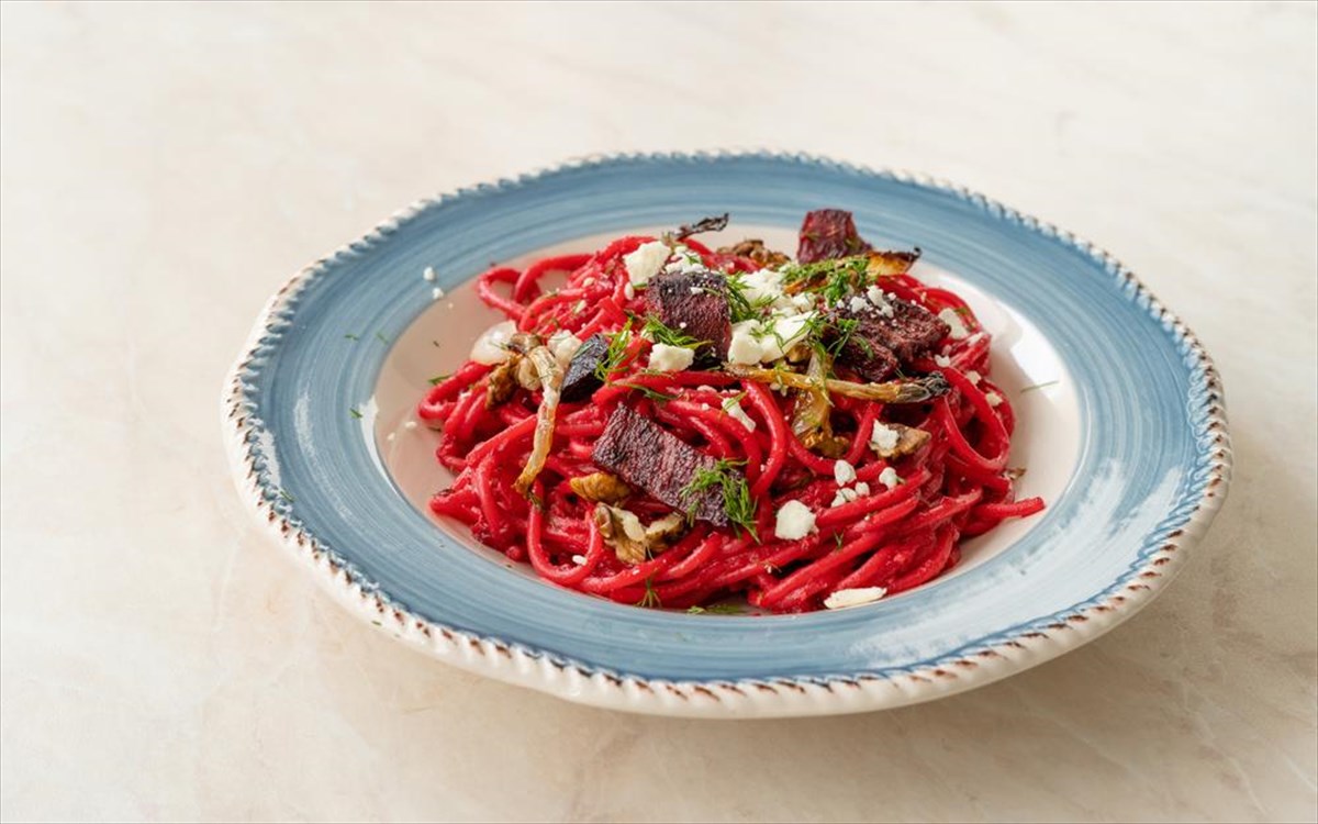 Φτιάξτε στο σπίτι την τέλεια μακαρονάδα με πέστο παντζαριού