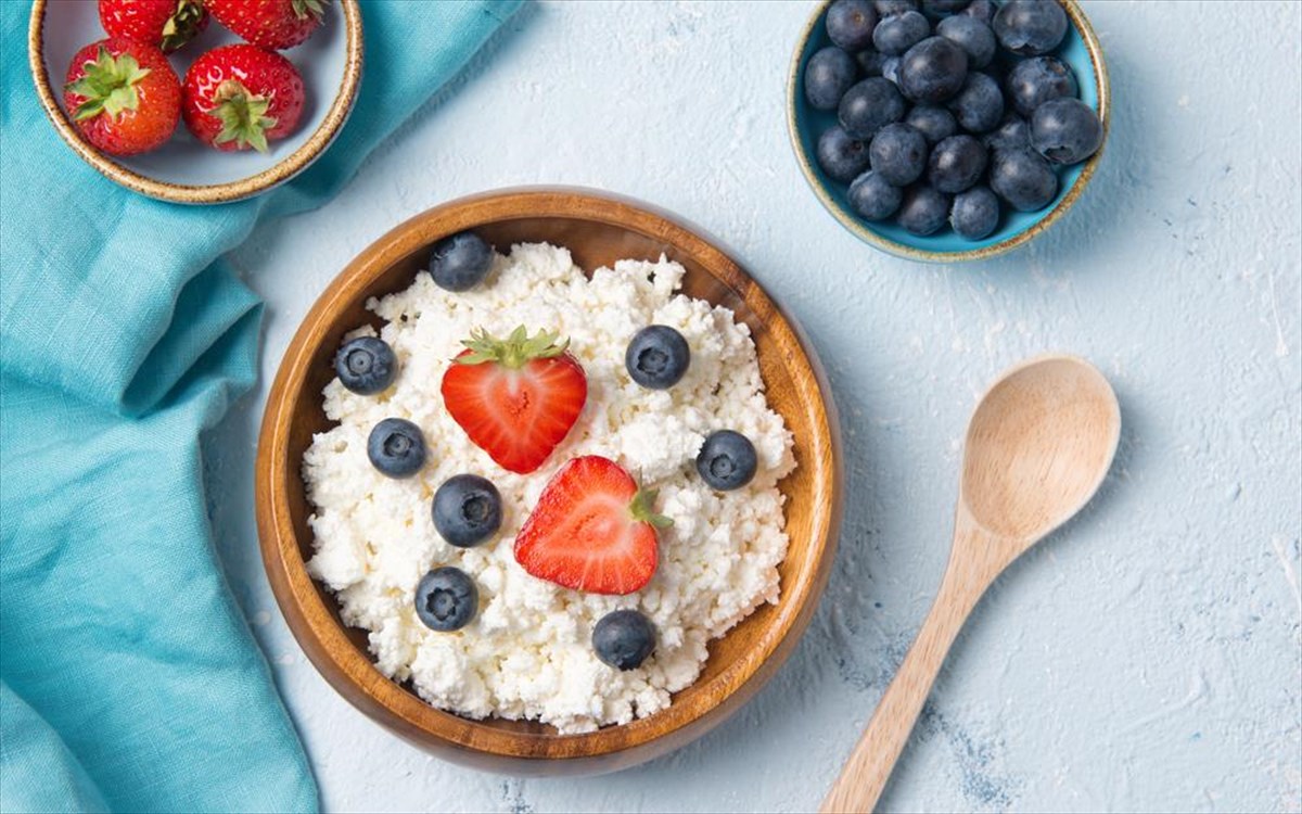 Ικανοποιεί τη γλυκιά γεύση και ταυτόχρονα παρέχει επαρκή ποσότητα σε πρωτεΐνη, η οποία ενδυναμώνει τη μυϊκή μάζα και το μεταβολισμό. Αν τα φρούτα δεν είναι αρκετά γλυκά, δοκιμάστε να ρίξετε μέλι ή αναμίξτε τα με ένα κουταλάκι του γλυκού σκόνη κακάο.
