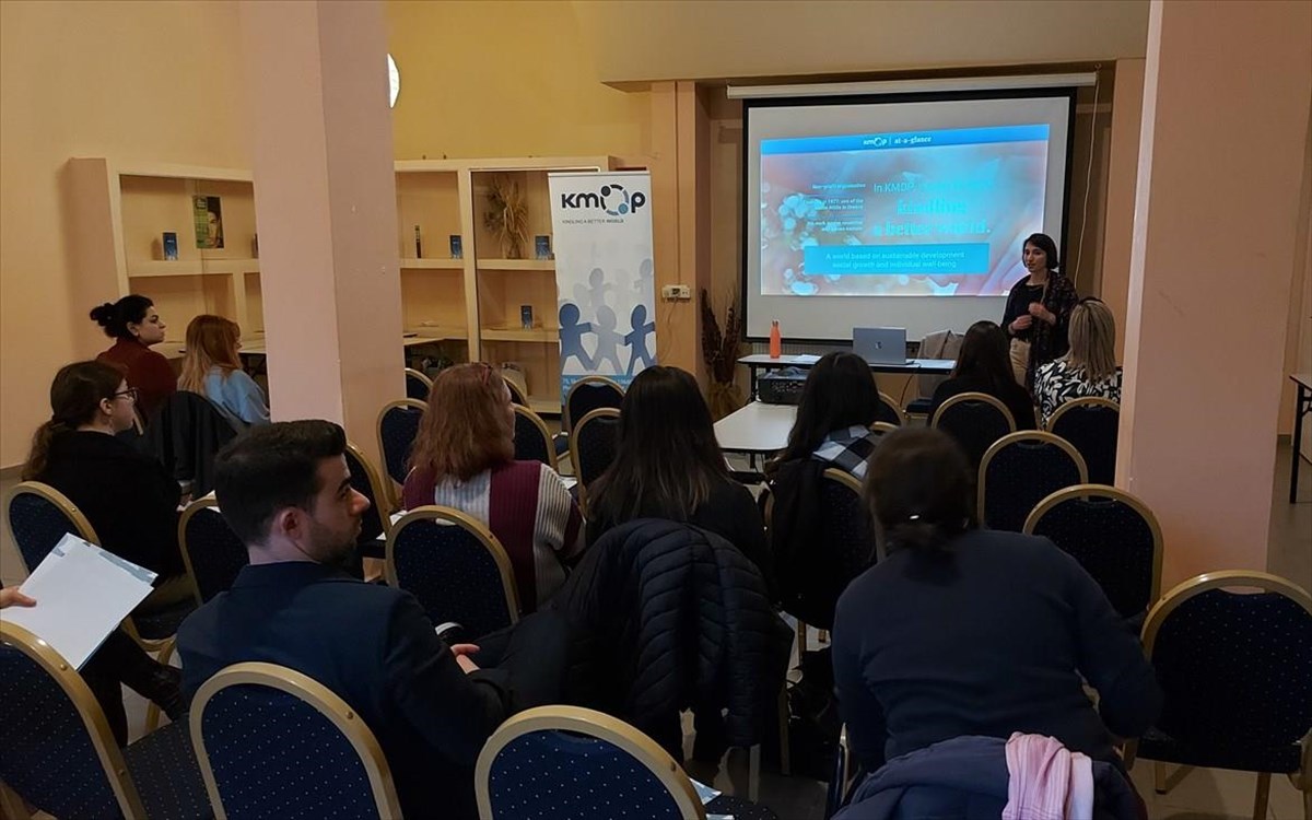 Τέλος, η κ. Κατερίνα Σούρδα παρουσίασε τις υπηρεσίες που προσφέρει το ΚΜΟΠ Social Net για τη στήριξη ευπαθών κοινωνικών ομάδων, όπως ΑμεΑ και τις οικογένειές τους, άτομα τρίτης ηλικίας και έφηβους έως 15 ετών με υψηλό κίνδυνο παραβατικότητας.