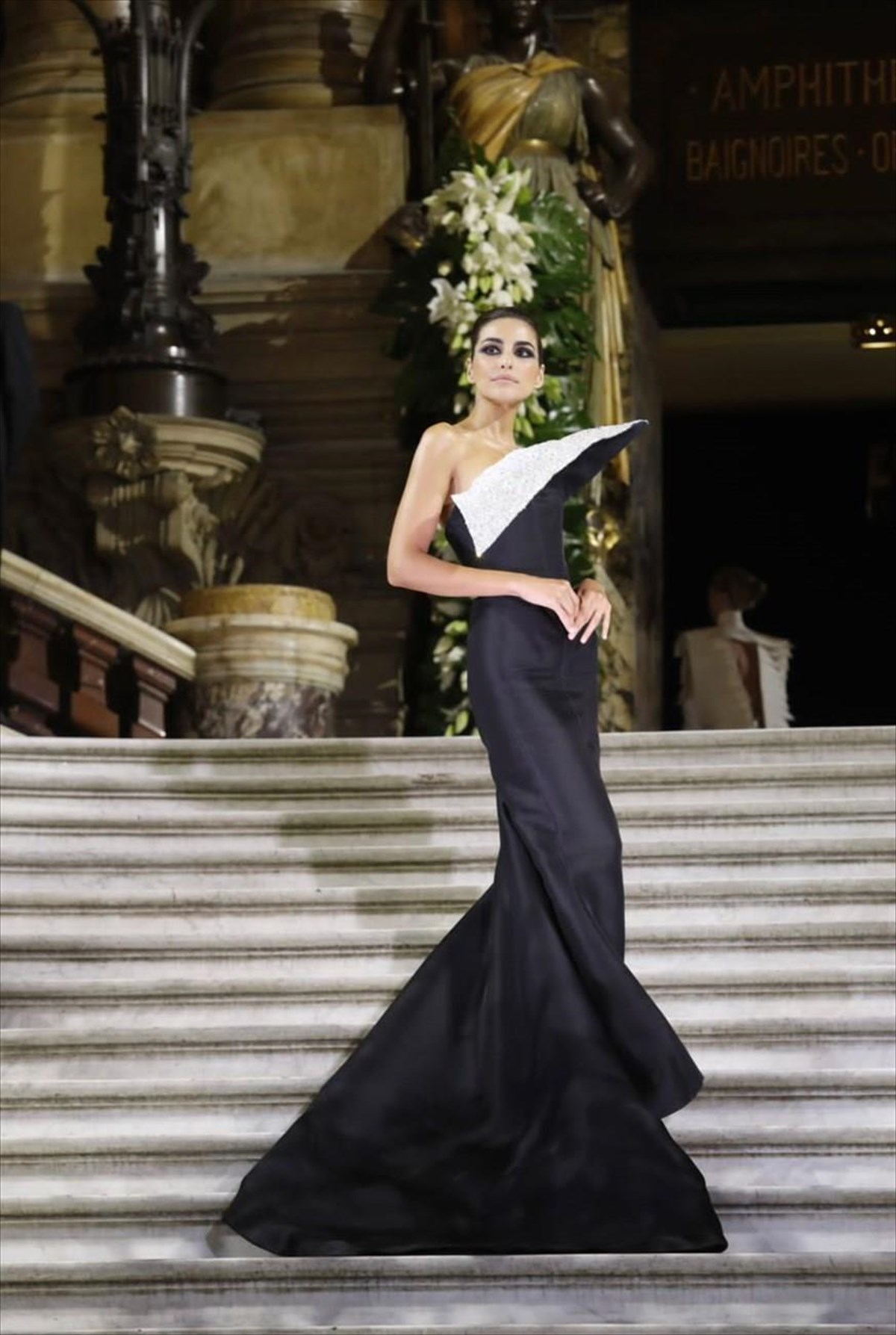 Τα φορέματα ήταν γραμμικά και με υπέροχο επιβλητικό κόψιμο. Το σκηνικό στην όπερα ήταν ιδιαίτερο, με τον γνωστό σκηνοθέτη Claude Lalouche, να βιντεοσκοπεί την επίδειξη για τις ανάγκες της καινούργιας του ταινίας.